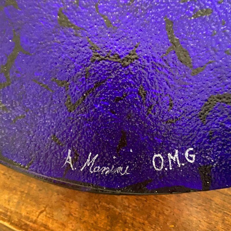 Handgefertigtes Geschirr aus 24-karätigem Rot-, Blau- und Gold-Plattierglas, hergestellt in traditioneller Glasfusing-Technik. Schale aus Muranoglas. Das Kunstwerk ist vom Glasmeister signiert.