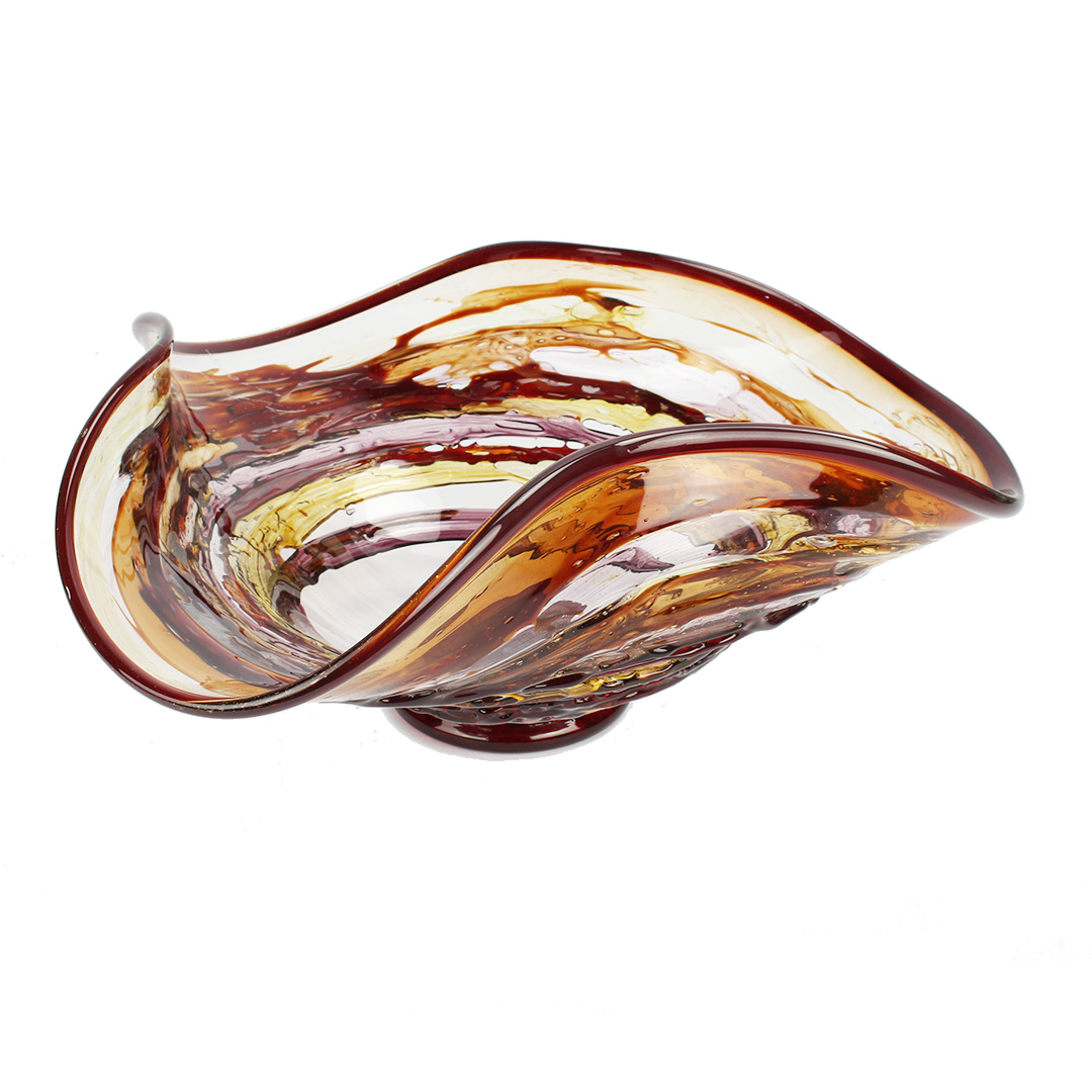 Handmade blown colored centerpiece. This plate - bowl is made with a very particular technique, called Sbruffi, unique made in Murano. A first mass of crystal is used to shape a vase. Than some colored glasses are blown over the vase to give color and to prepare the embellishments. Finally these blown glasses are broken and submitted to fusion for a second time.