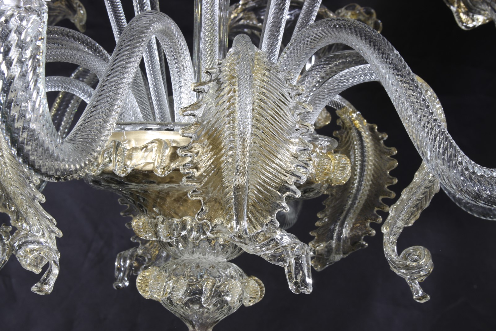 This amazing chandelier handmade according to the old Murano glass tradition, handcrafted in crystal glass.