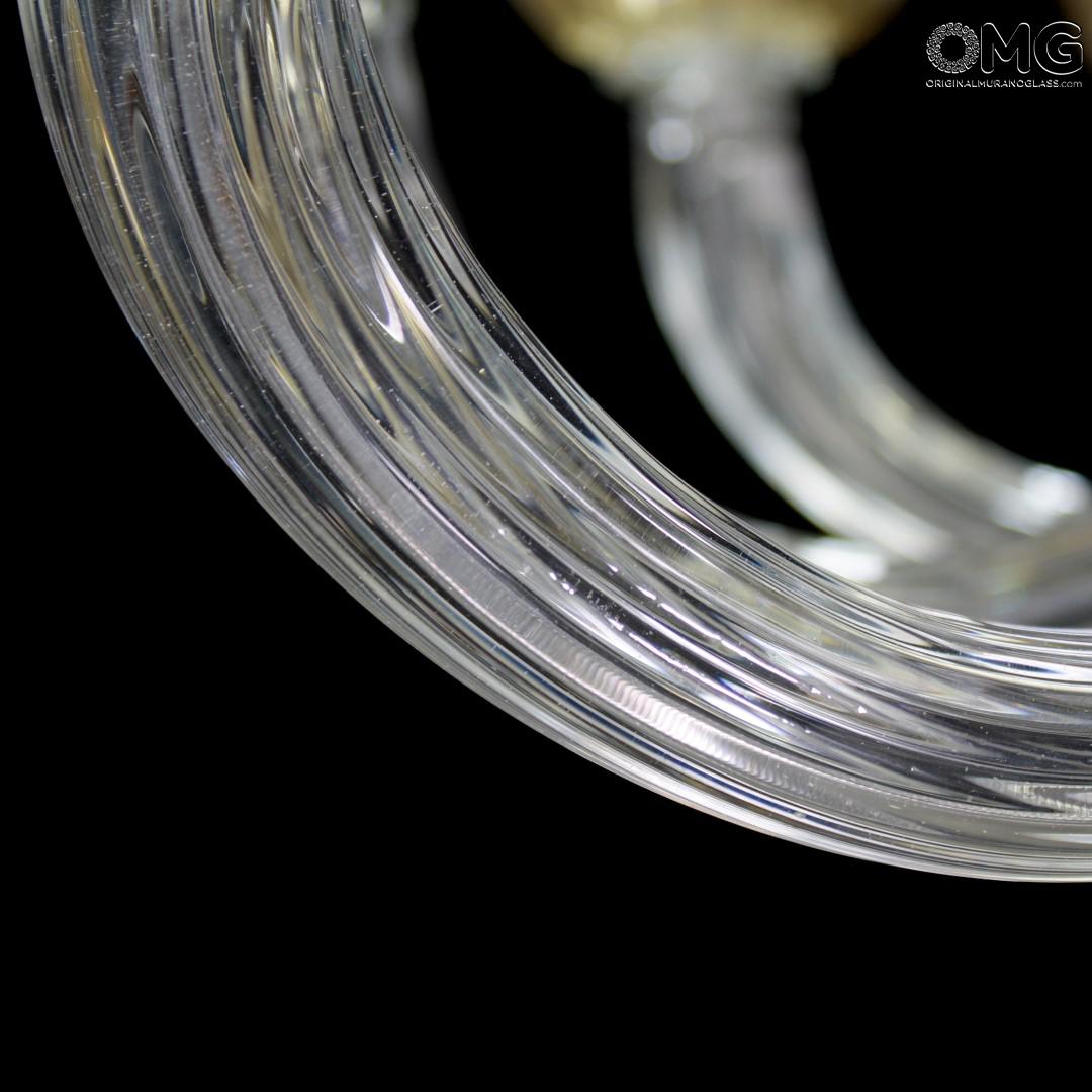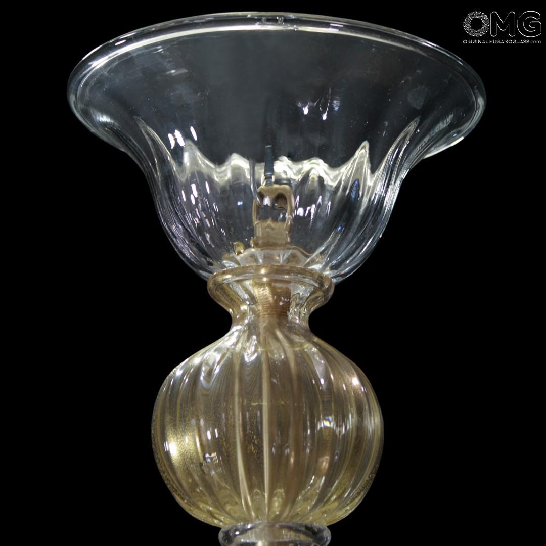 Venetian glass chandelier, double stage 16 + 8 light-colored crystal with gold leaf variegation.