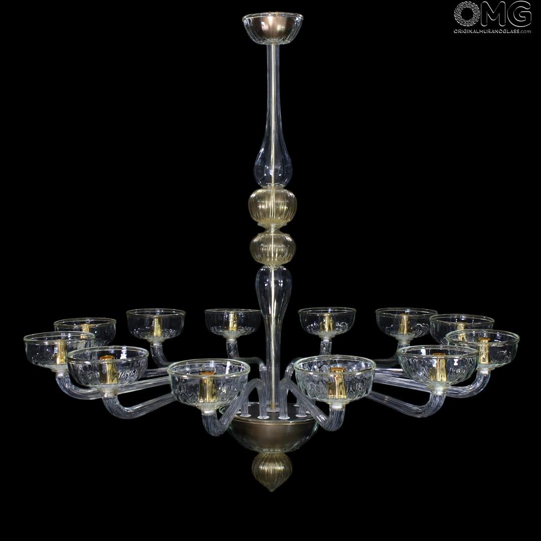Chandelier in Murano crystal glass and details in gold 24kt.