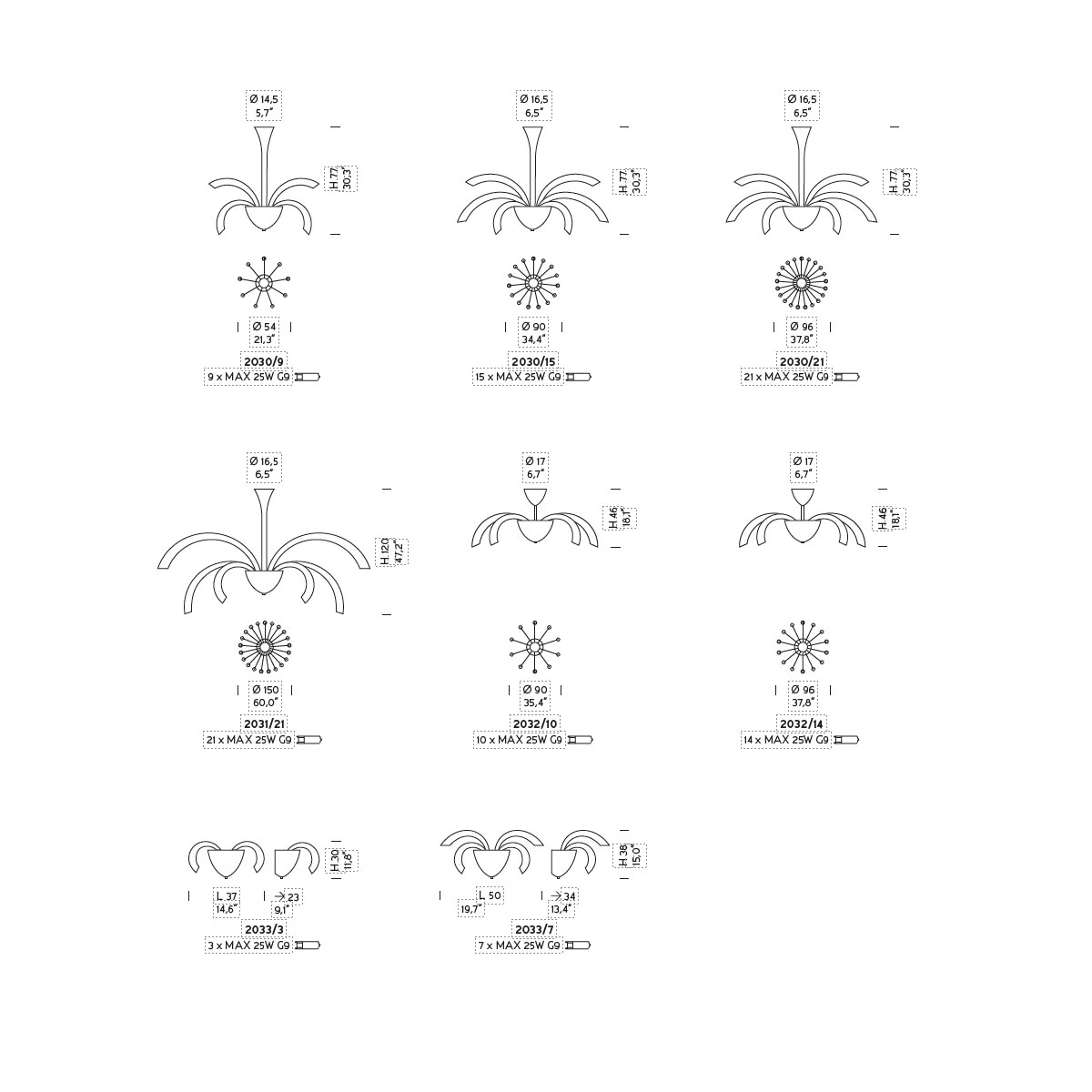 Wired with E14 bulbs (220-230V) for Europe, UK, Asia and Australia customers;