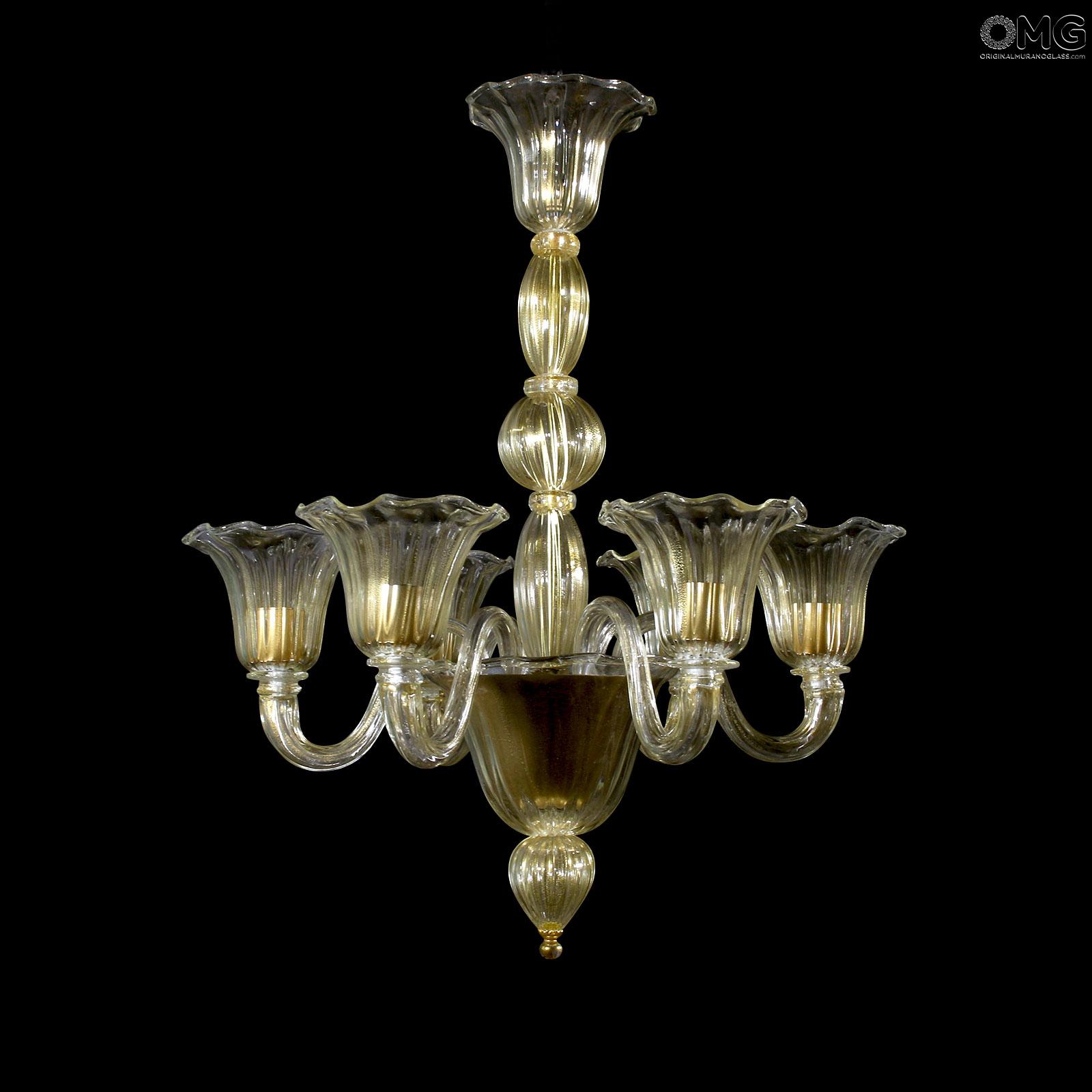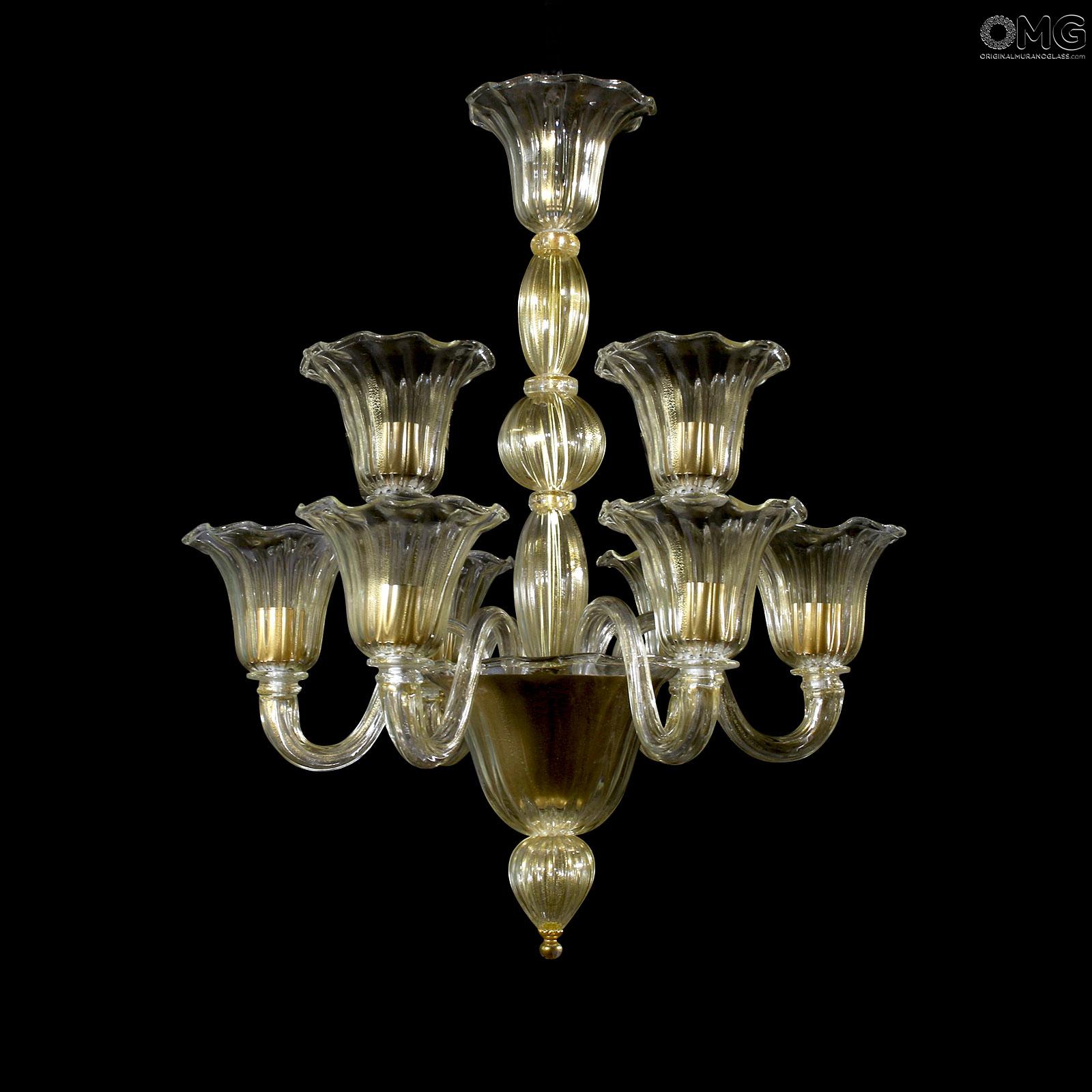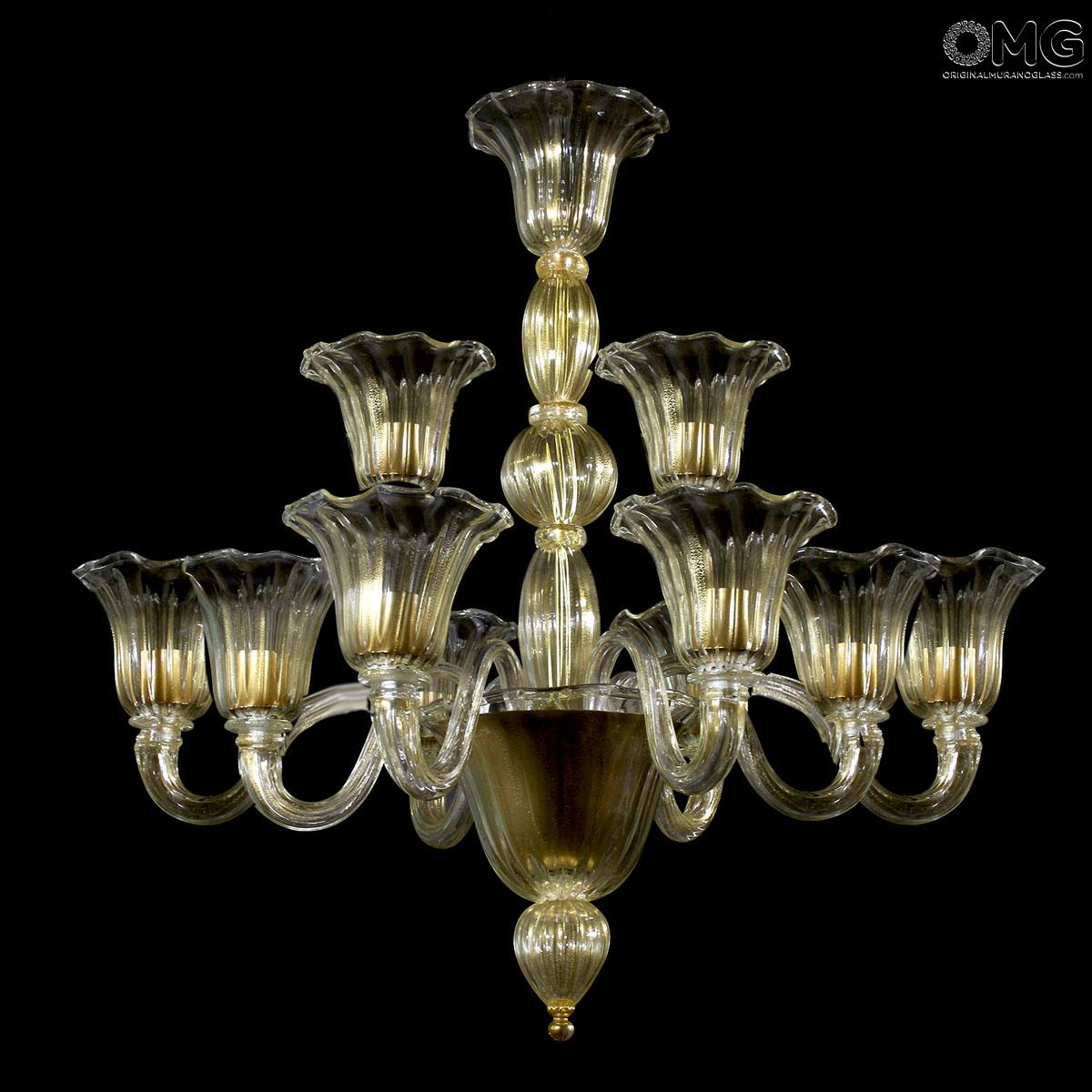 Venetian glass Chandelier in Murano glass and pure gold 24 kt submerged, elegant and exlusive for luxury home lighting.