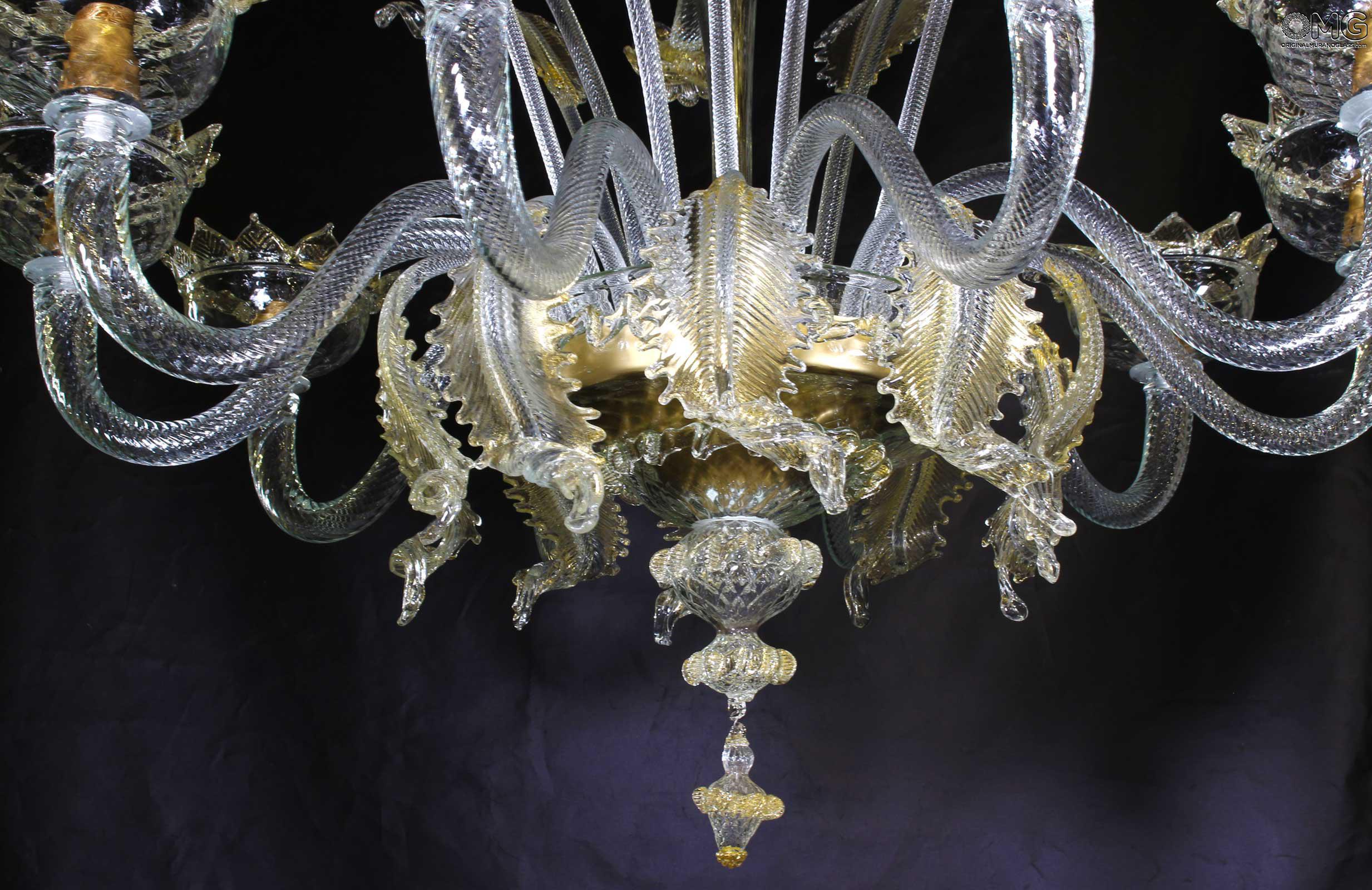 Chandelier handmade according with the old Murano glass tradition, handcrafted in blown glass.