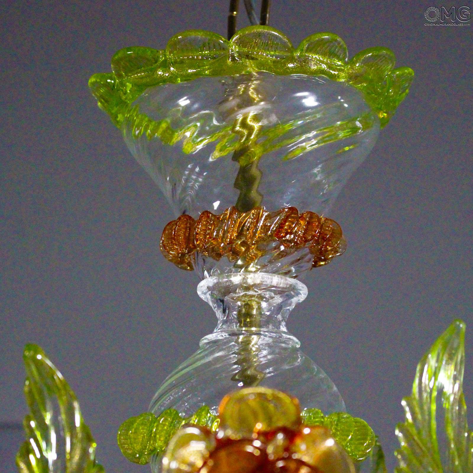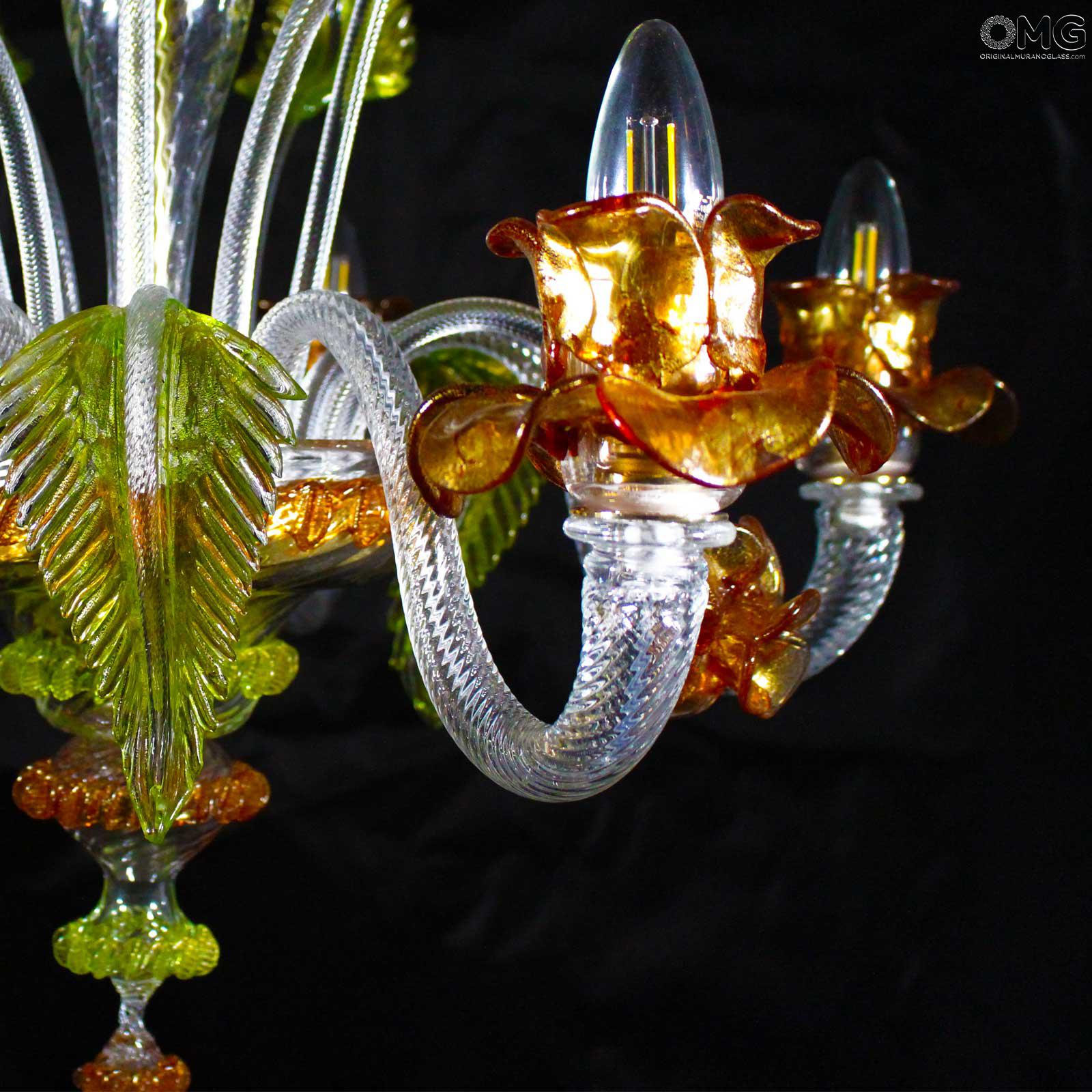 Chandelier handmade according with the old Murano glass tradition, handcrafted in blown glass.
