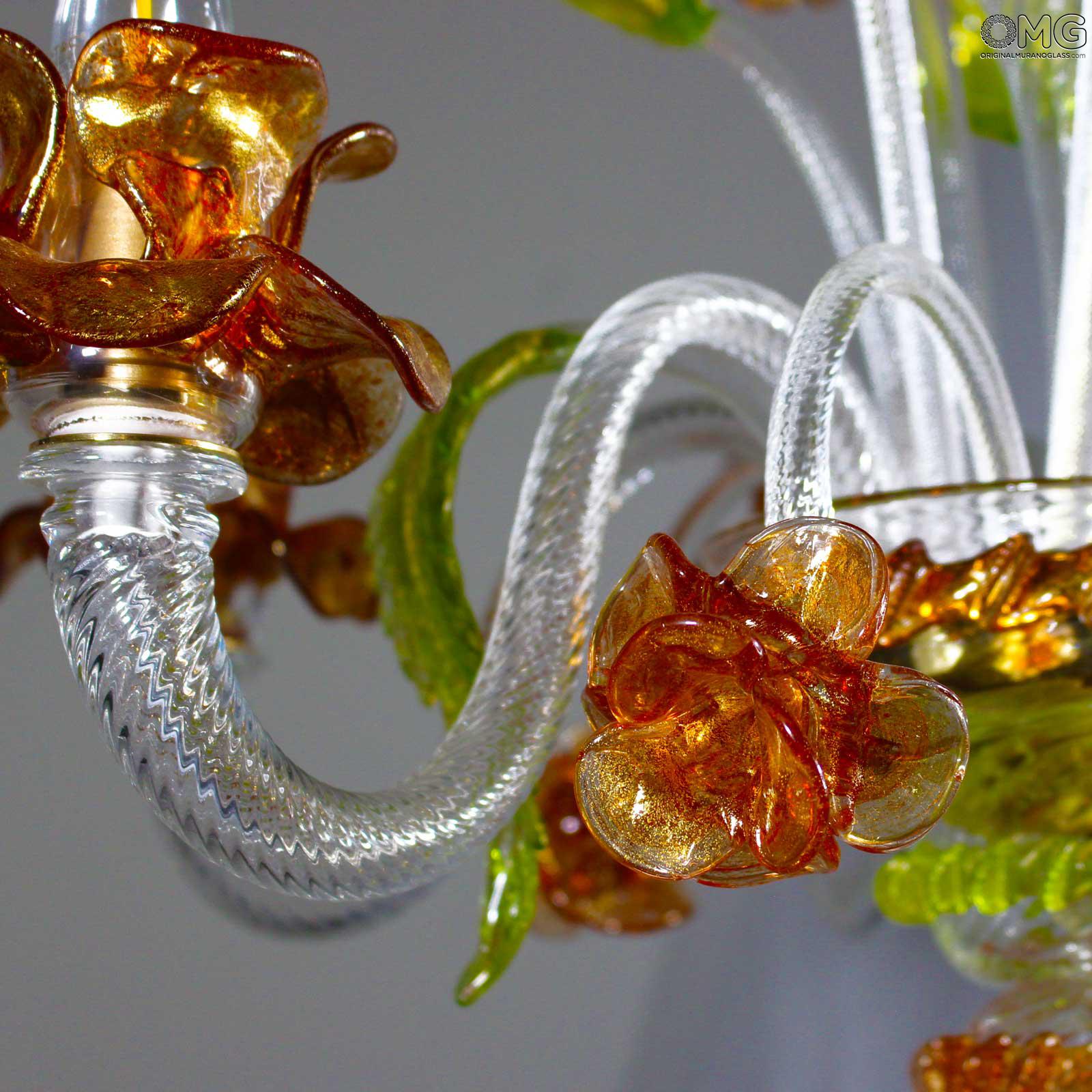 Chandelier Venetian glass and pure gold 24kt details.
