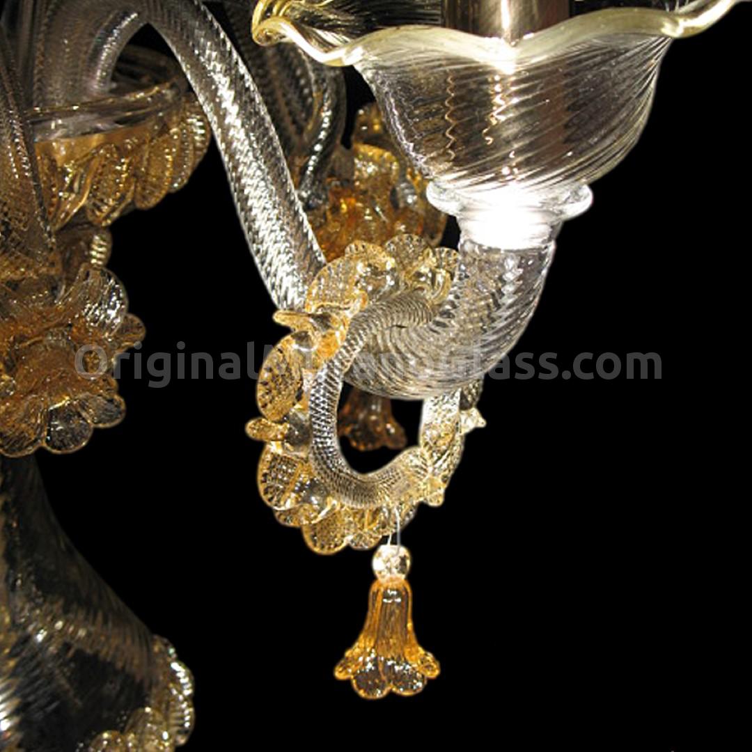 Flambeau 5 lights in blown rigadin twisted. Body Crystal finishes amber.