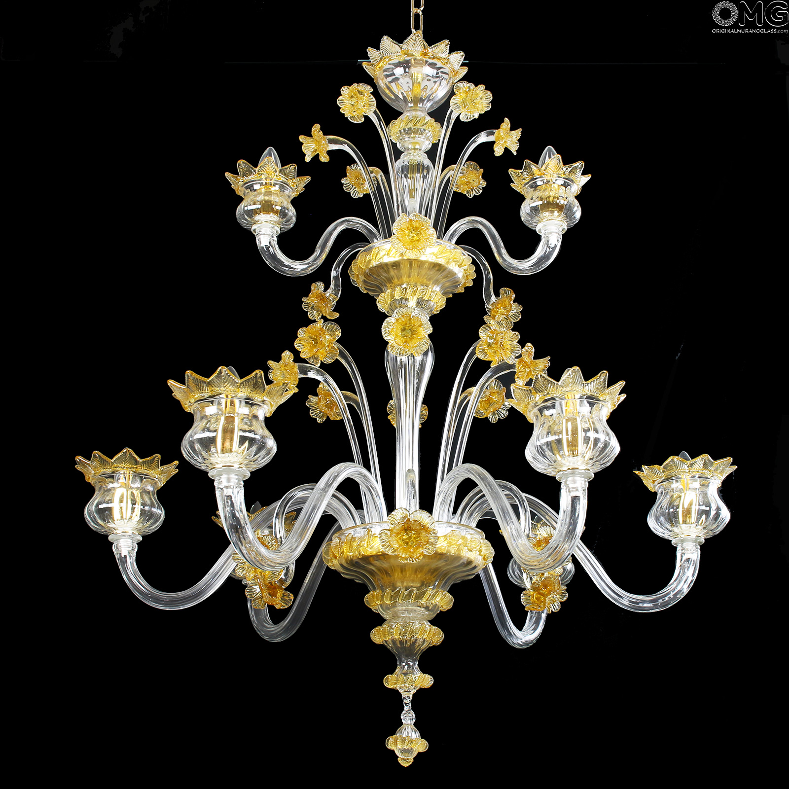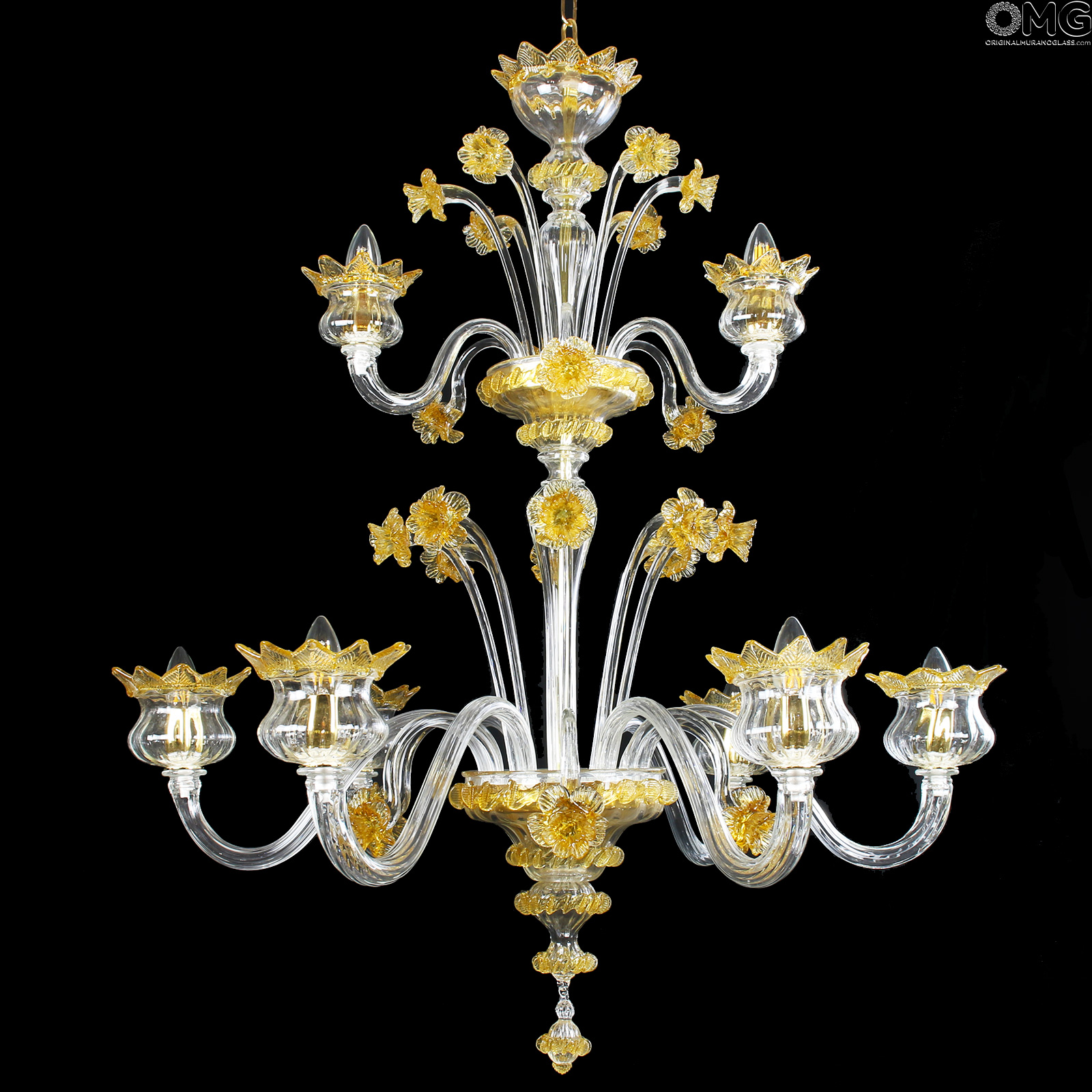 Chandelier handmade according with the old Murano glass tradition, handcrafted in blown glass.