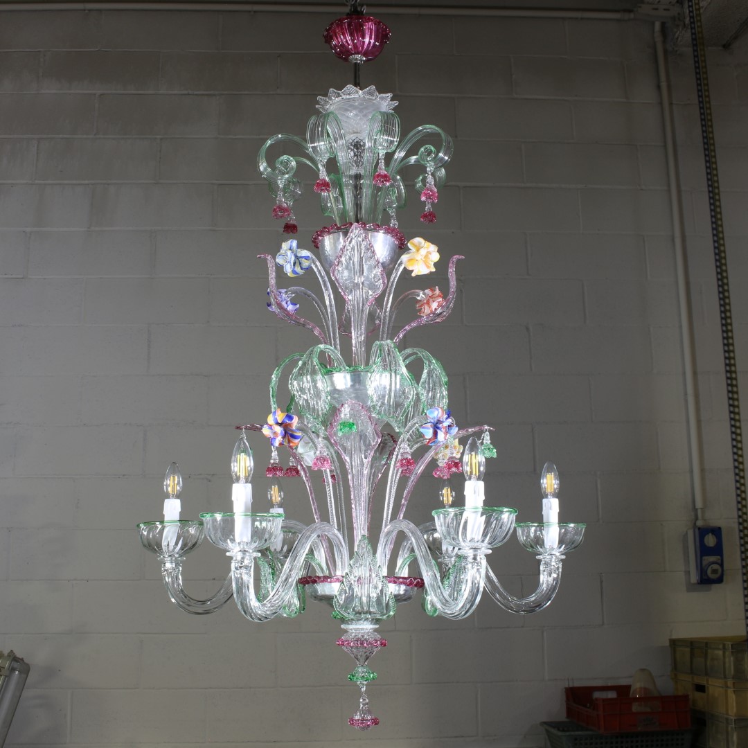 Chandelier Venetian glass and details in various glass colors.