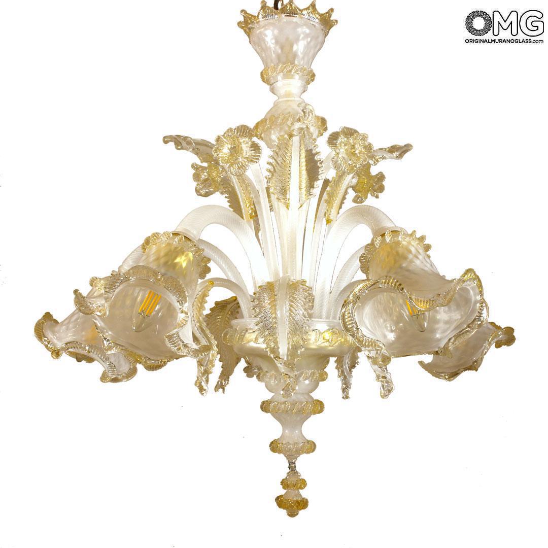 Venetian Chandelier - Seta White Gold - Original Murano Glass