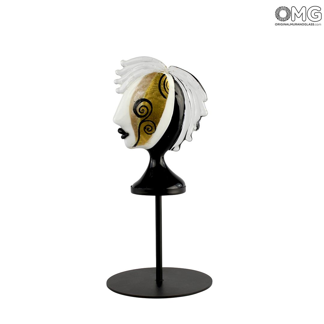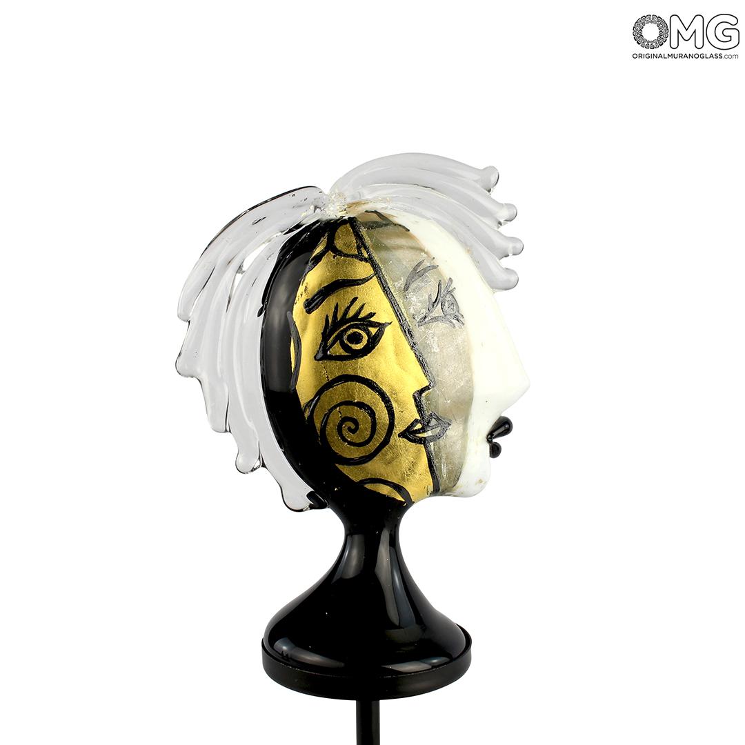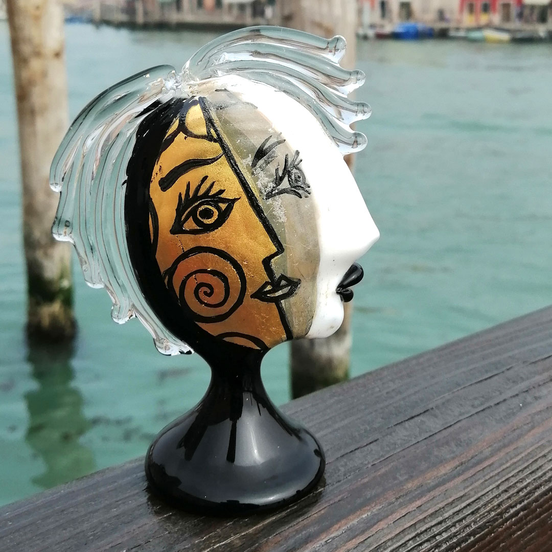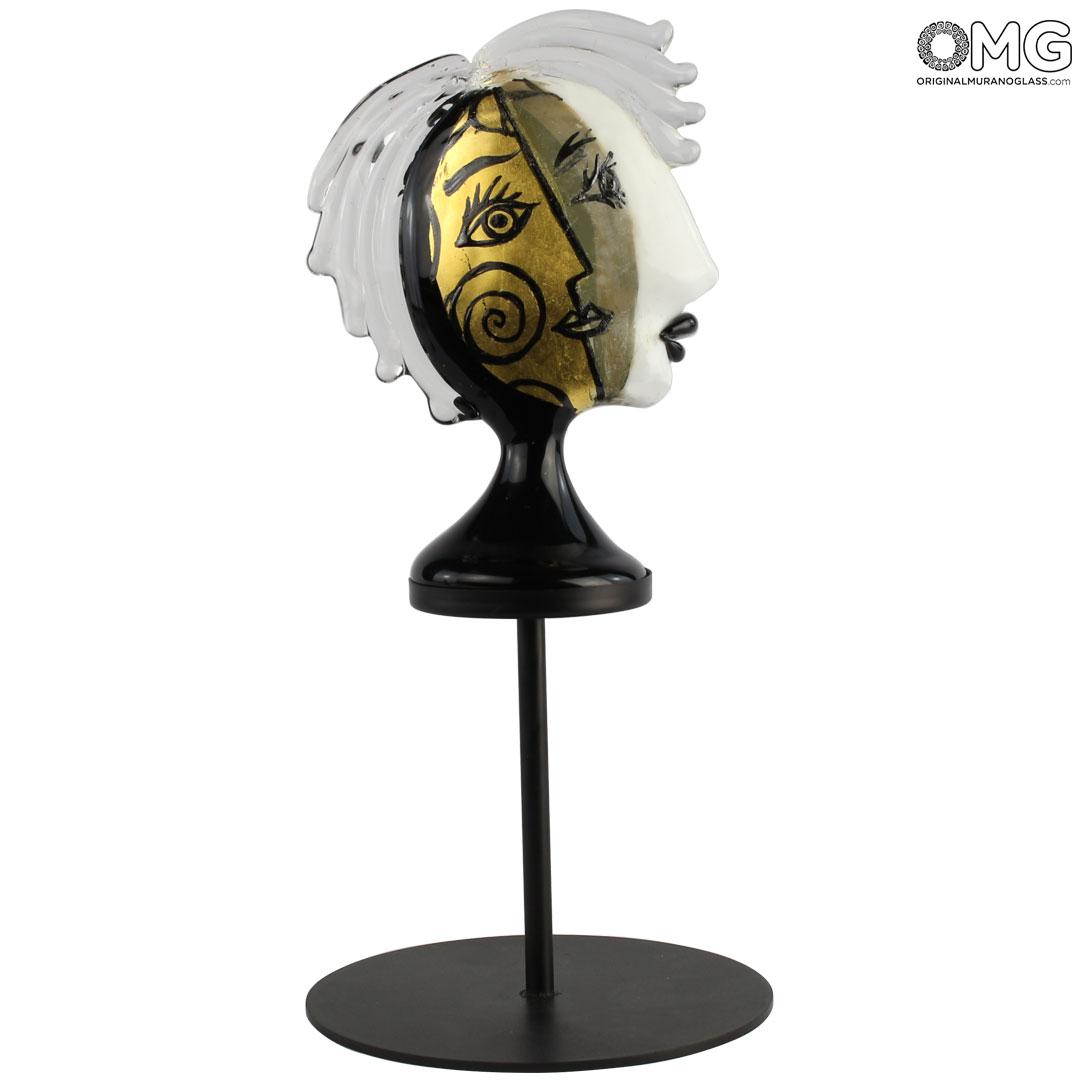 Abstract sculpture with modern design, the style is reminiscent of the paintings of the great artist Picasso, surrealism has been reinterpreted in punk and pop style. This tiny original Murano glass sculpture is made freehand with lamp working technique. Abstract subject - modern. Shades of colors and strong visual impact.