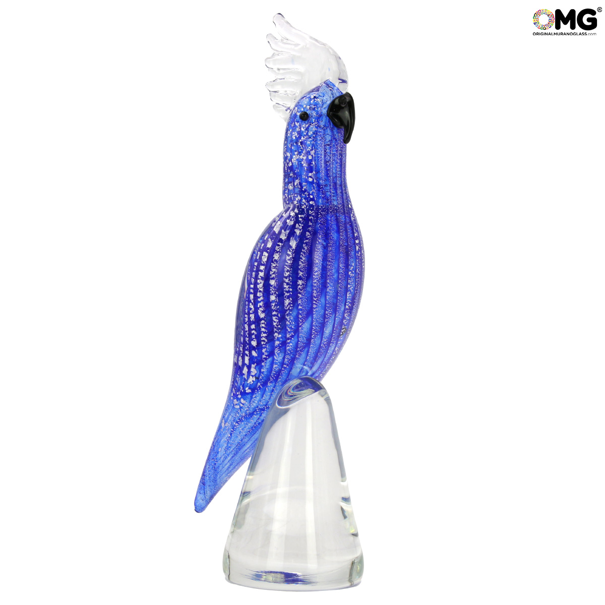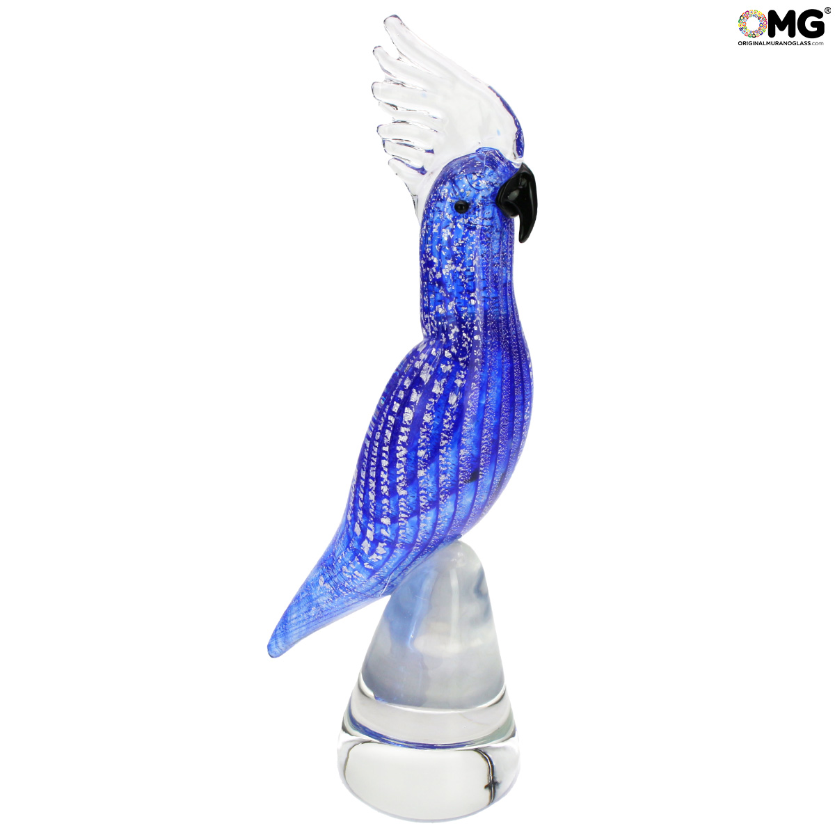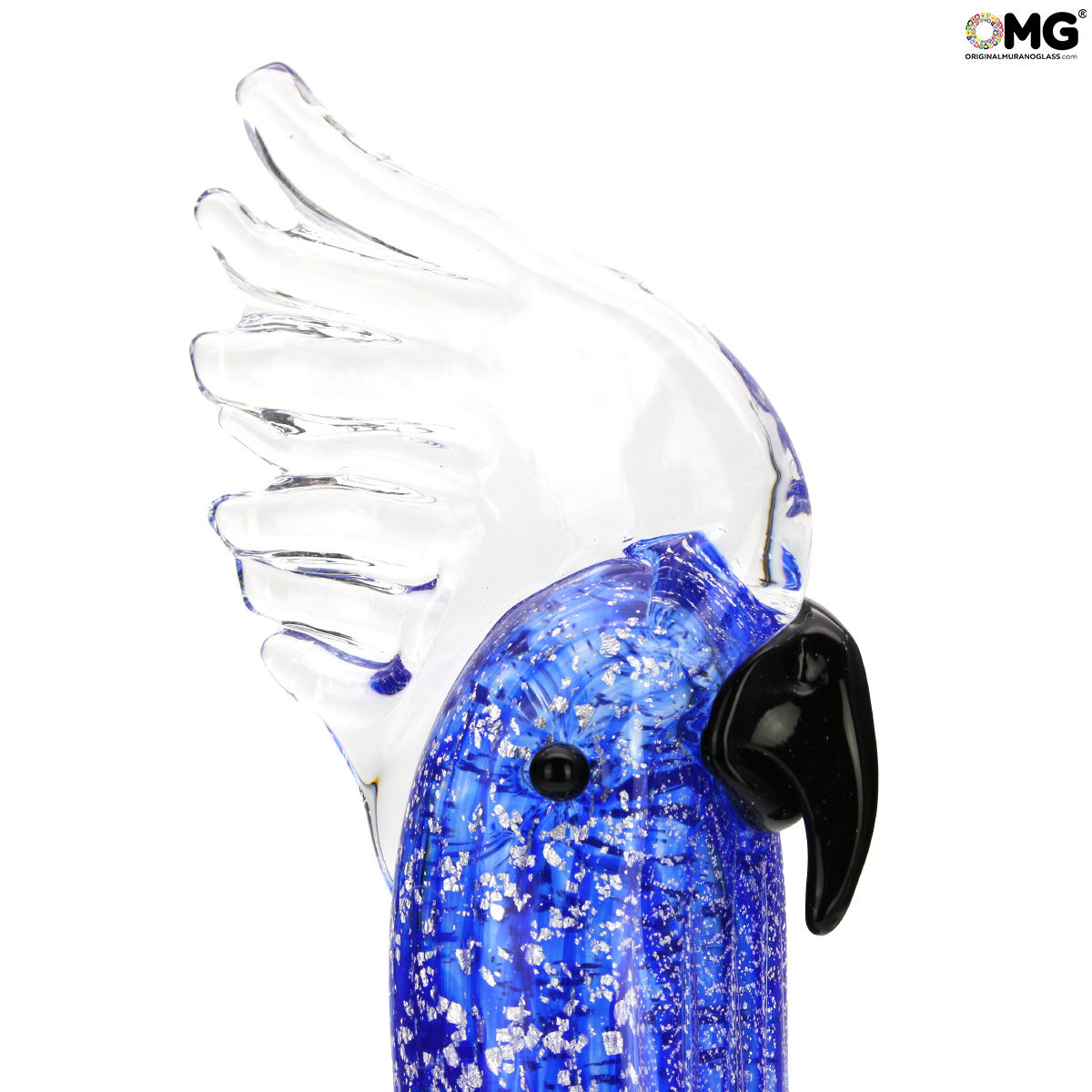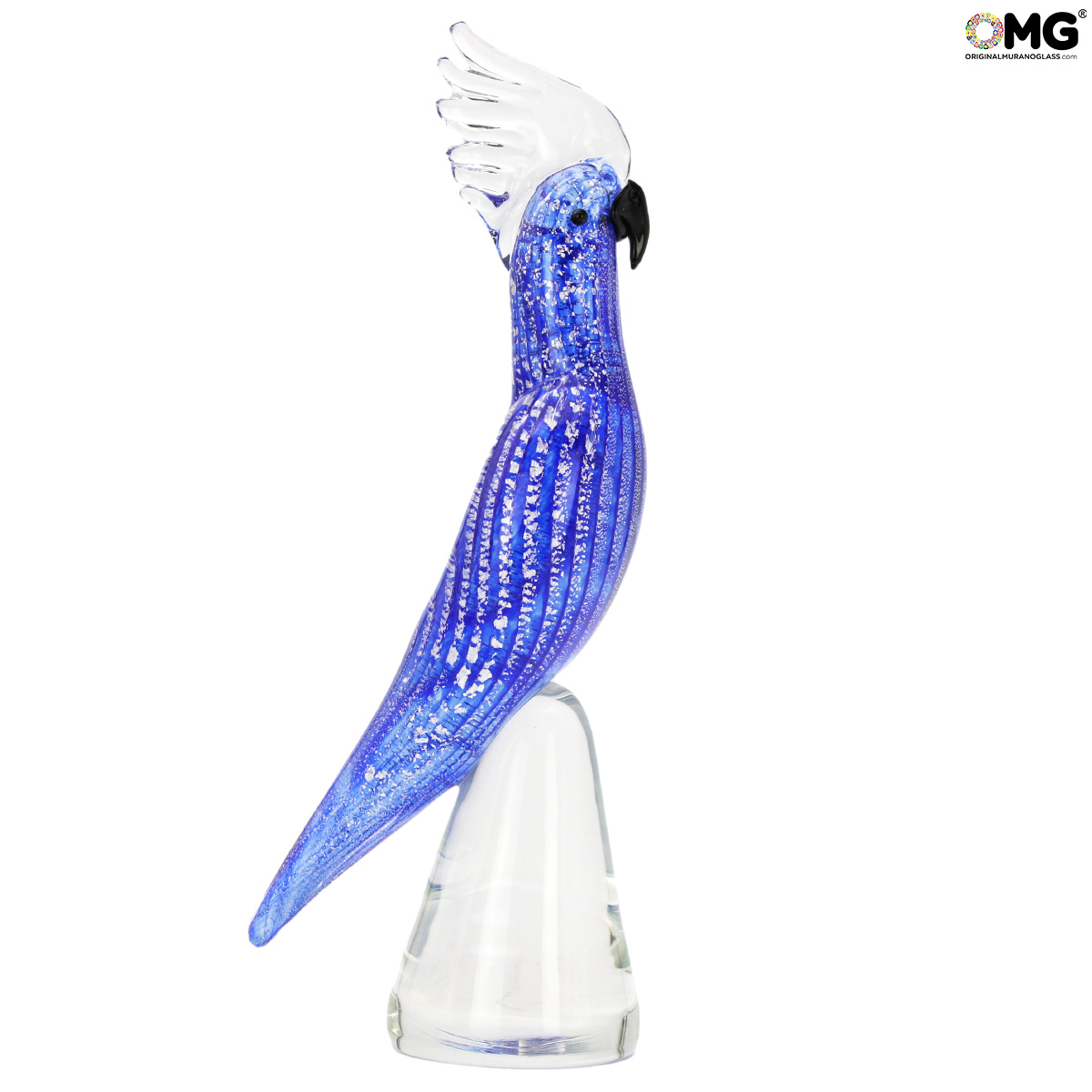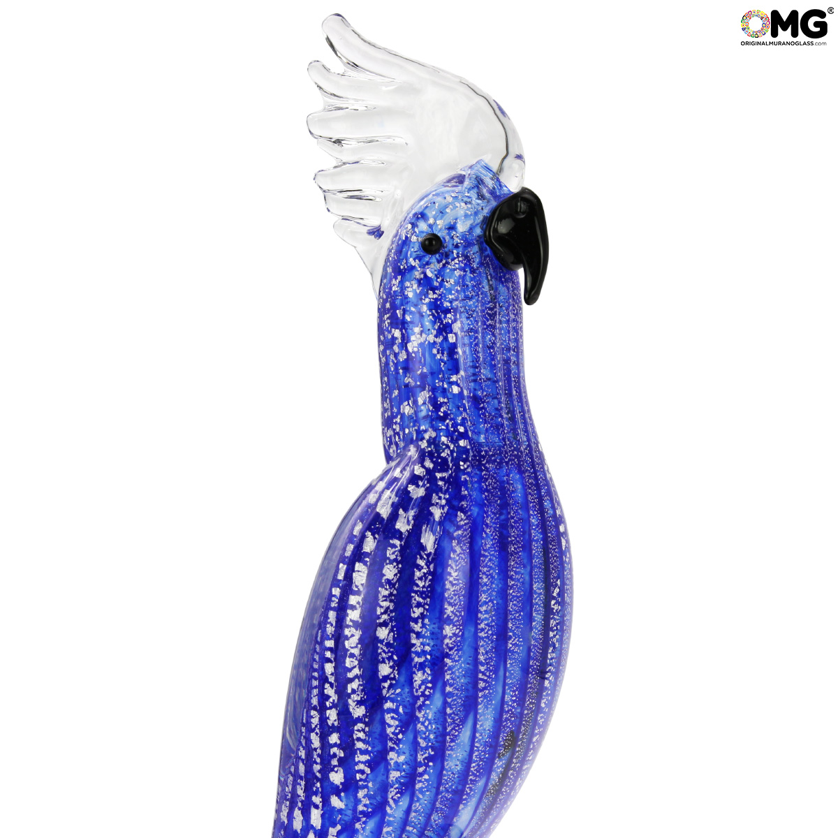 Blue Parrot and silver - Glass Sculpture - Original Murano Glass OMG