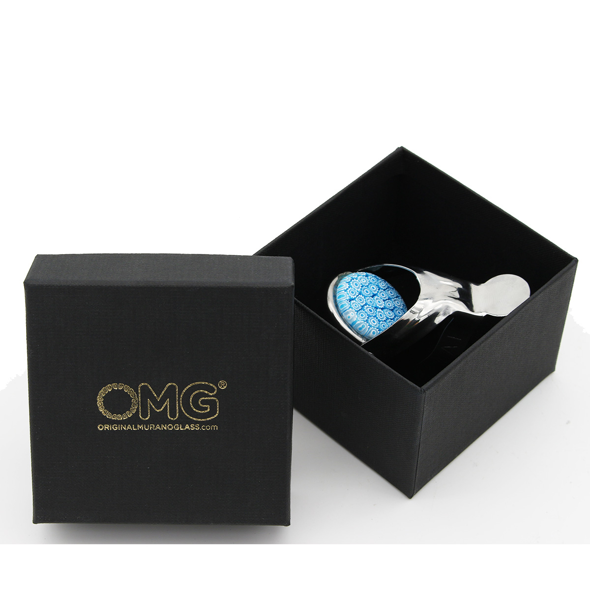 Flaschenverschluss Millefiori Hellblau – Original Murano-Glas OMG® + Geschenkbox