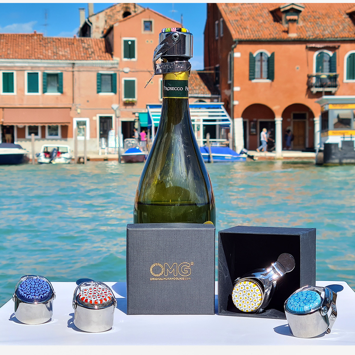 Flaschenverschluss „Millefiori Mix“ – Original Murano-Glas OMG® + Geschenkbox
