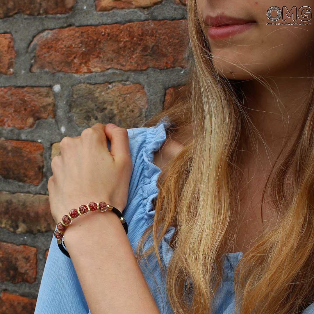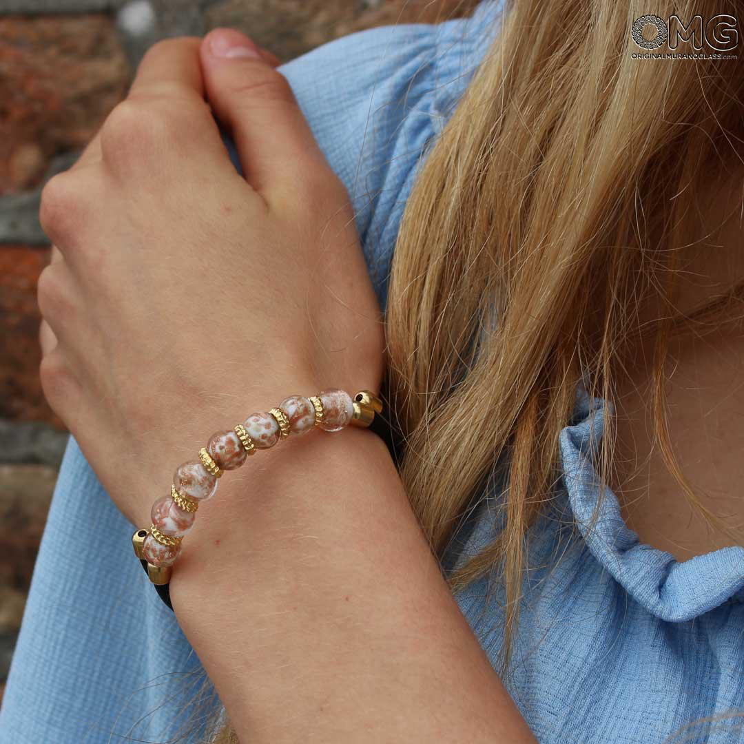 Handgefertigtes Armband aus Muranoglas mit lampwork-Perlen und Avventurina