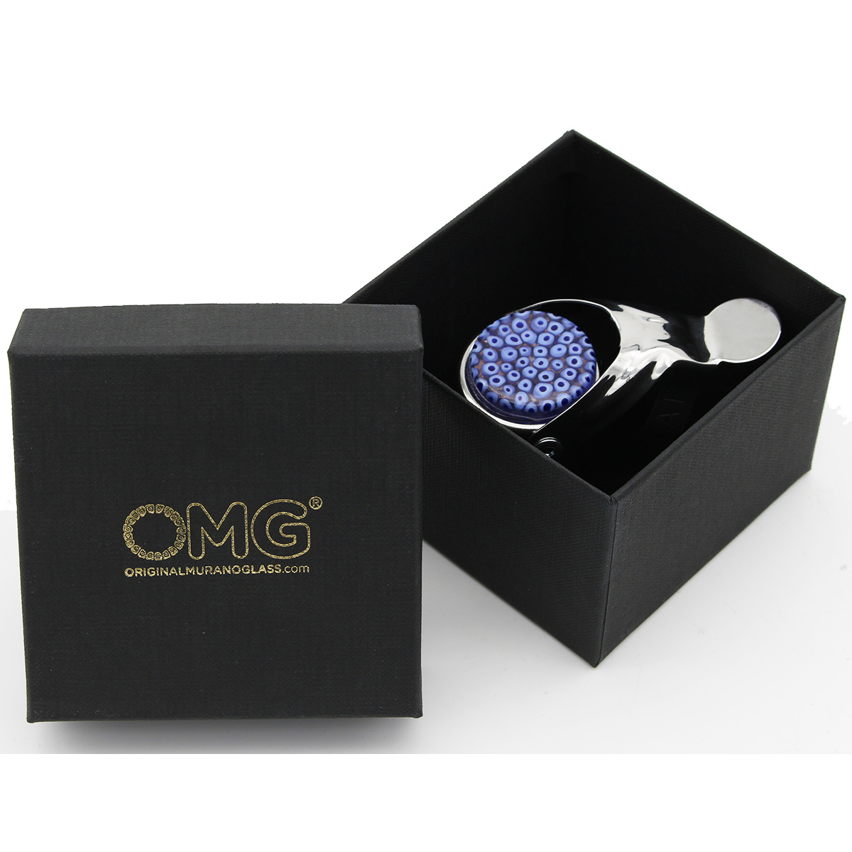 Flaschenverschluss Millefiori Blau – Original Murano-Glas OMG® + Geschenkbox