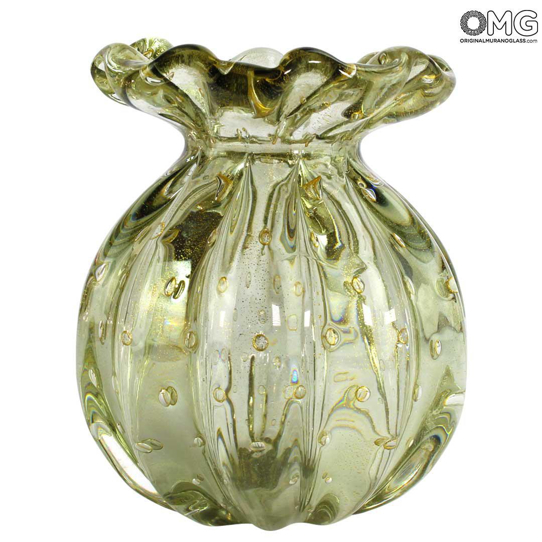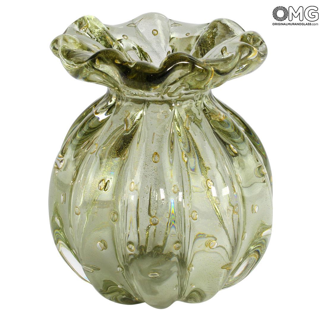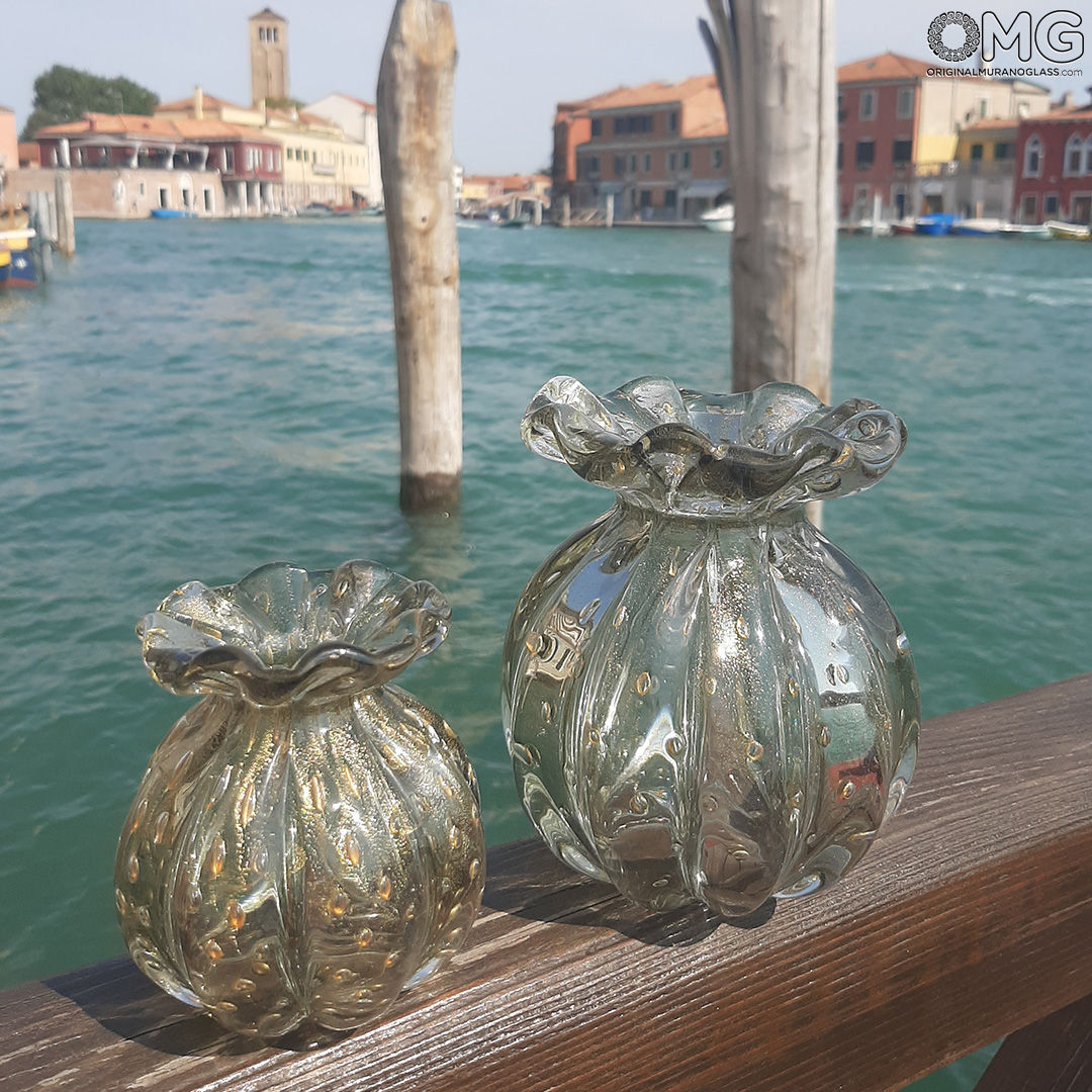 The vase is a unique piece of art made by hand, hence some variations of colors and patterns inside glass are possible and serve as additional assurance of the authenticity of this Murano Glass Venetian vase.
