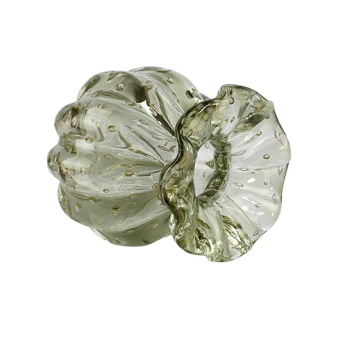 A particular decorative effect used in thick glass and consisting of a myriad of large and small “bubbles”, distributed in layers within the thickness of the glass. After cooling down the first part of his piece, the artist condensed the work in the end by using submerged glass, known as the 'Sommerso' technique, (made by overlapping different layers of glass with a variety of consistency and colors) .