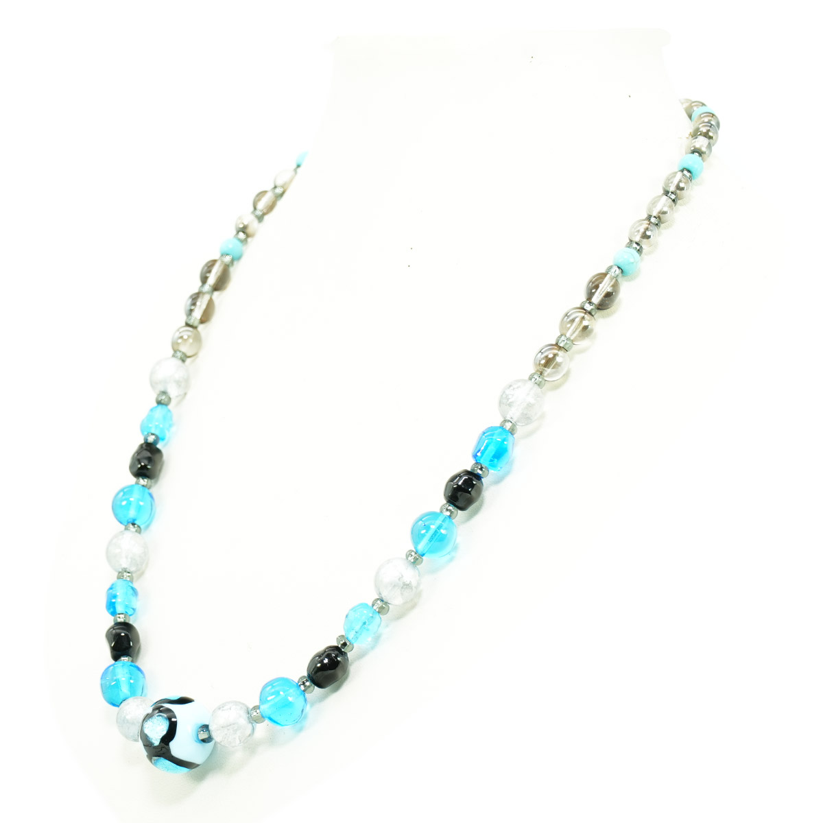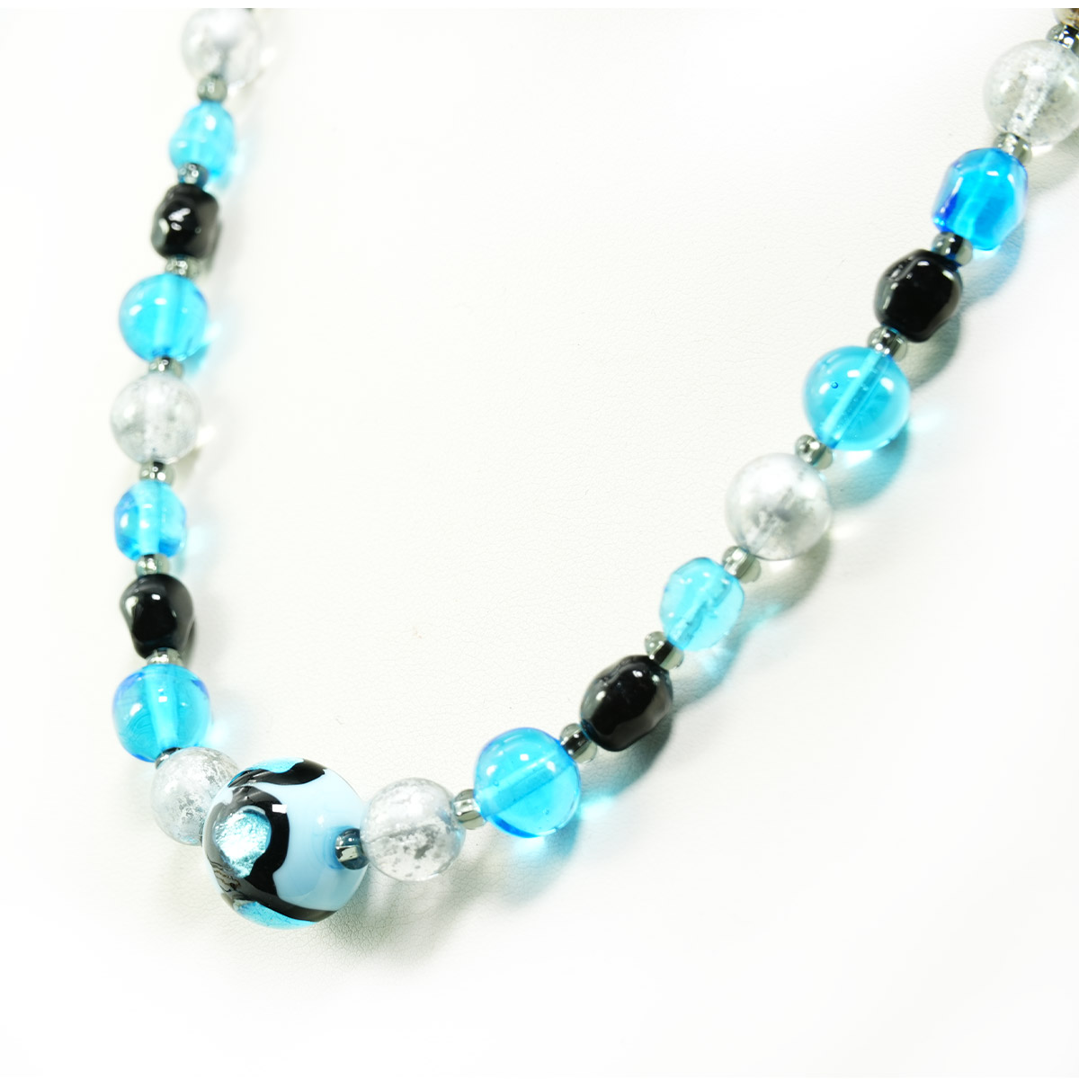 This necklace is made in lamp working technique, and each bead is worked as single piece.