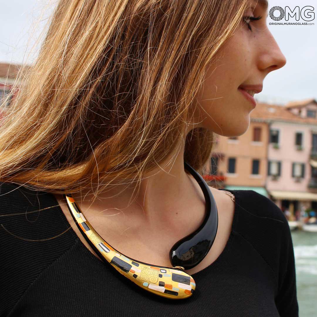 Klimt-Halskette – Glas mit 24-karätiger Goldbemalung – Original Murano-Glas OMG