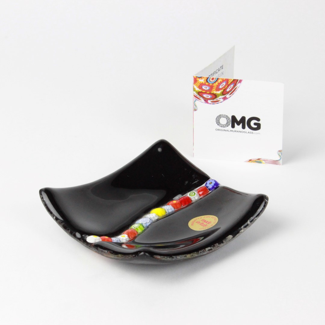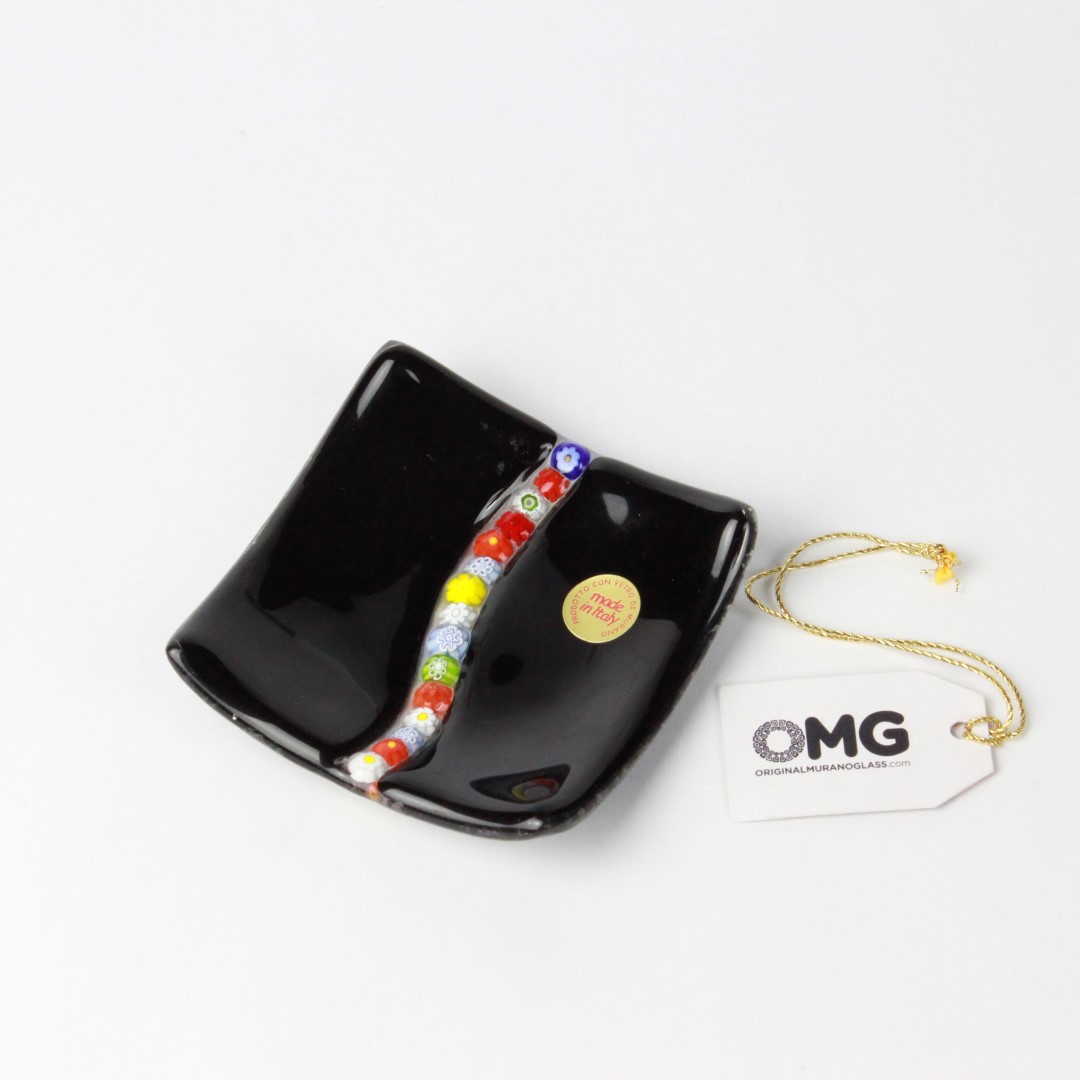 Millefiori-Teller – schwarz – Original Murano-Glas