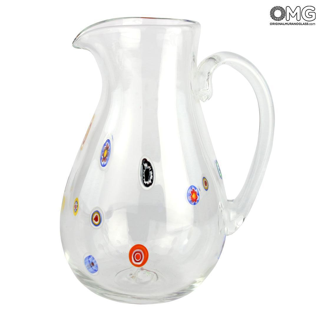 Make your table more precious with this set of 6 glasses, blown made in Original Murano Glass with clear glass and Millefiori.