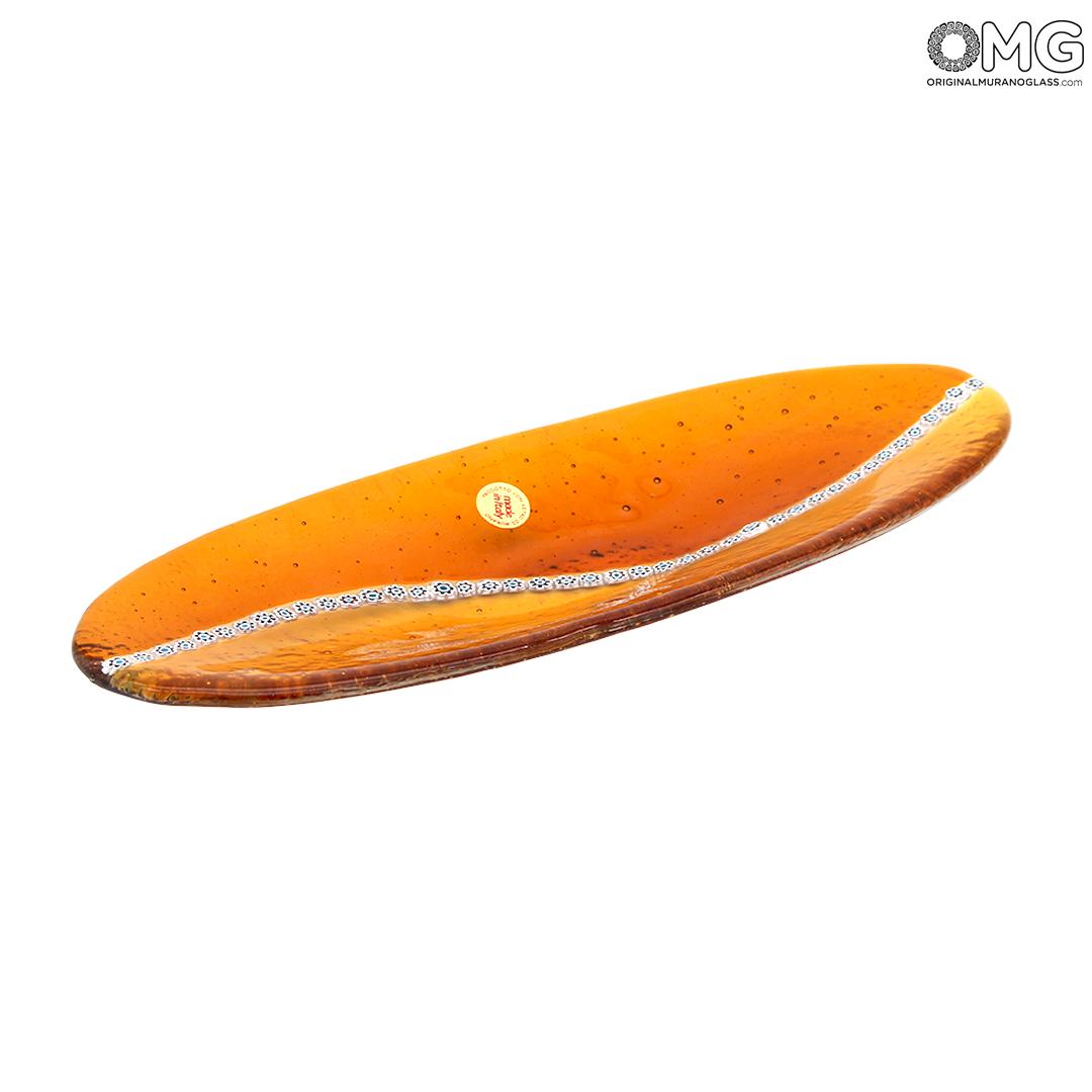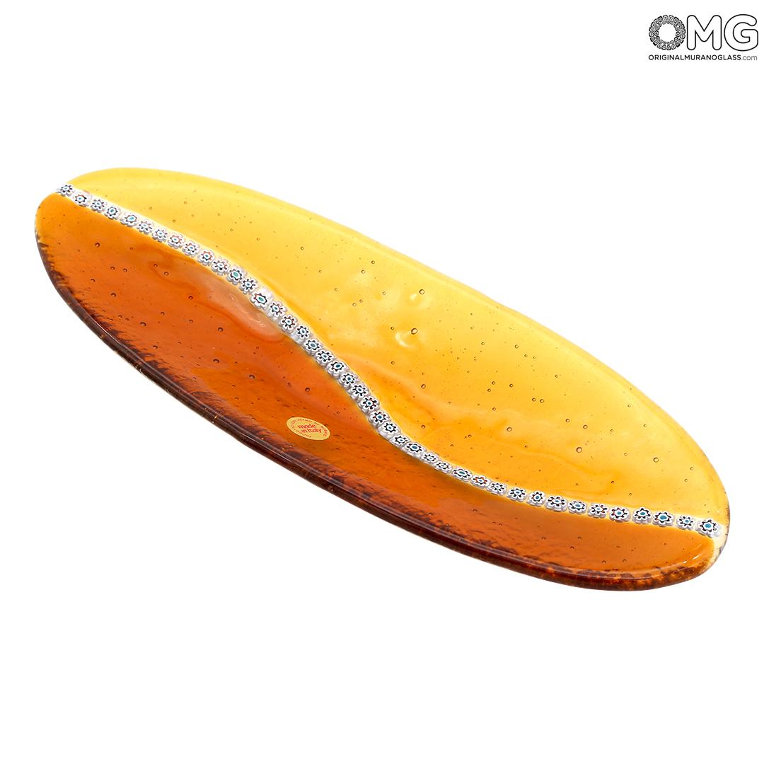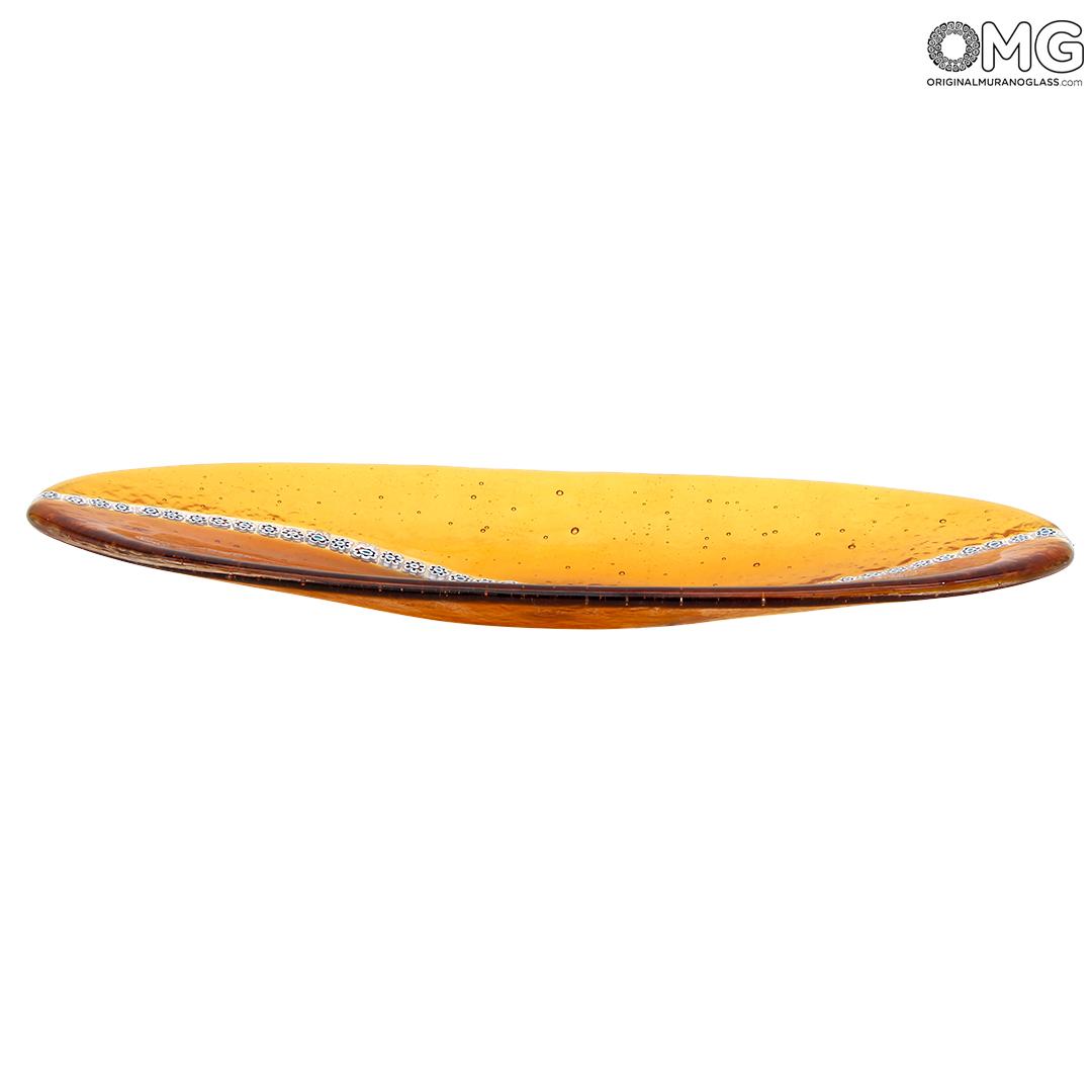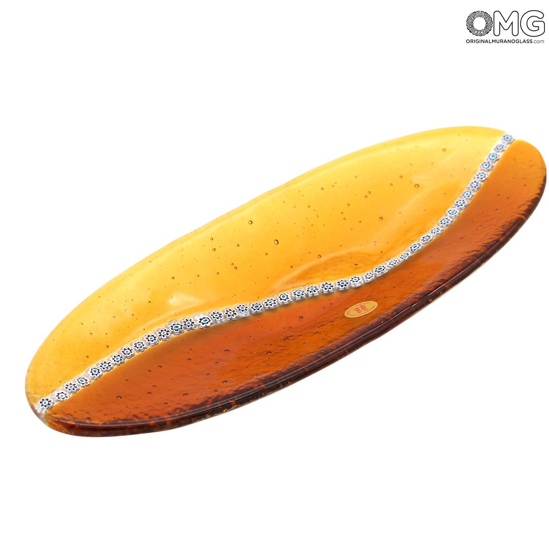 Millefiori-Teller in Bernstein – geschmolzenes Glas – Leere Taschen