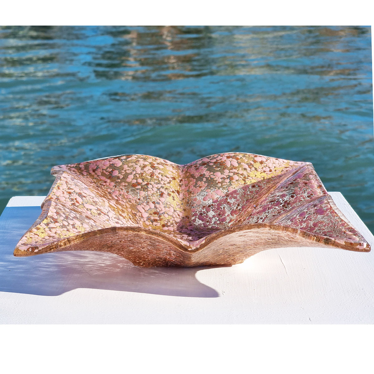 Colorful plate handmade with the tecnique of glass fusing with pure 24 gold decoration. The plate is available in 2 colors: pink-gold or dark gold. Nice centerpiece to decorate the house, the kitchen, the living room, the office, a table, precious for carrying candies or any small object that you have in your pocket near the entrance of the house, such as car keys or other.