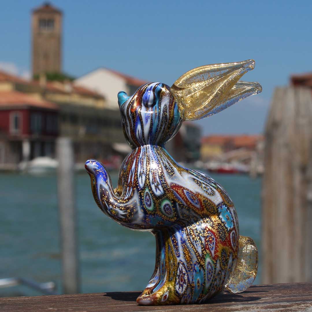 Rabbit Figurine in Murrine Millefiori Gold - Animals - Original Murano glass OMG