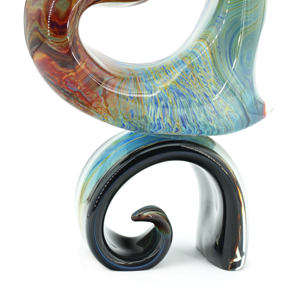 The twisted shape and internal colours create beautiful light effects that change depending on the viewer’s position.
