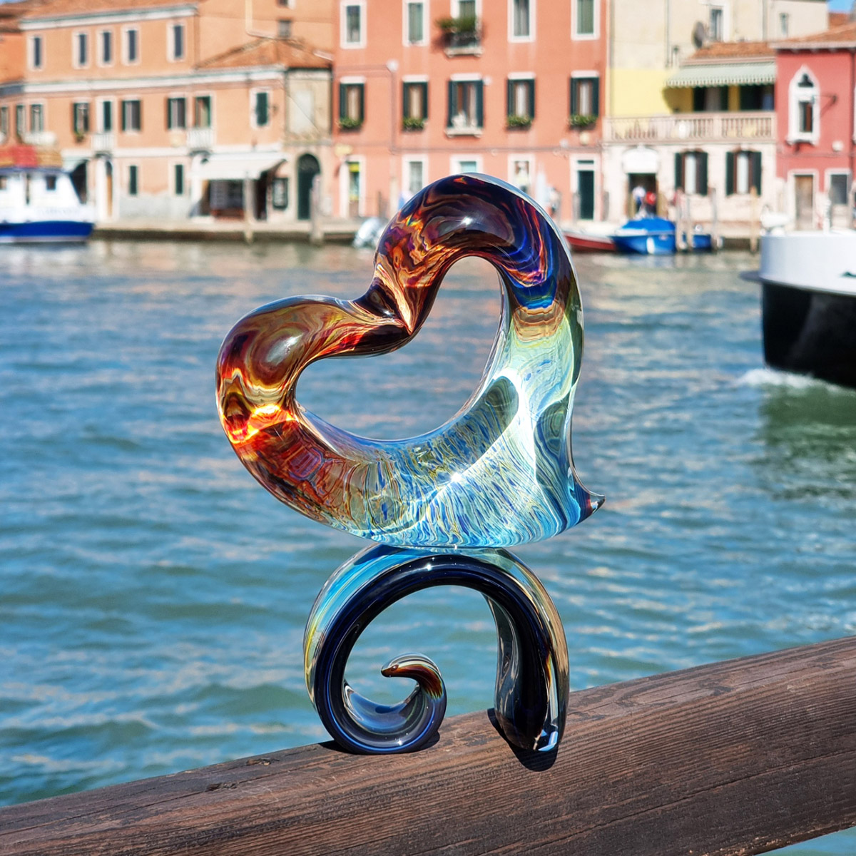 Herz – Skulptur aus Chalcedon – Original-Murano-Glas