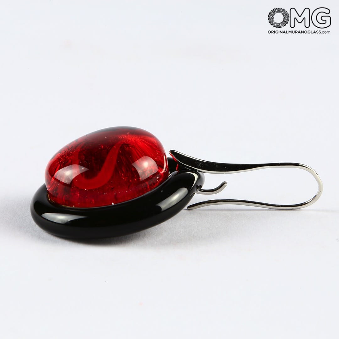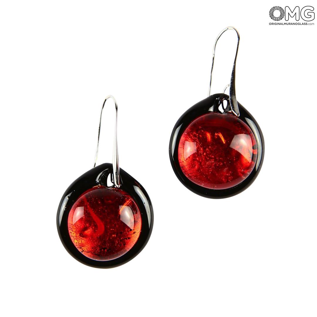 Earrings circular submerged glass - Red - Original Murano Glass OMG