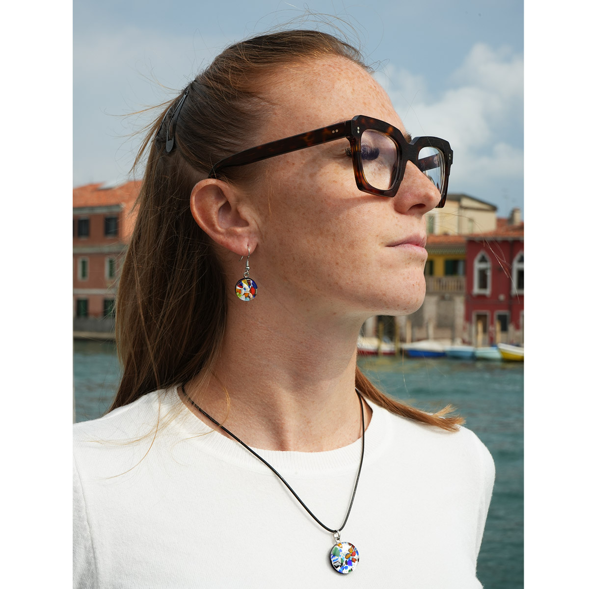 Parure Tono Round - multicolor and silver - Original Murano Glass OMG
