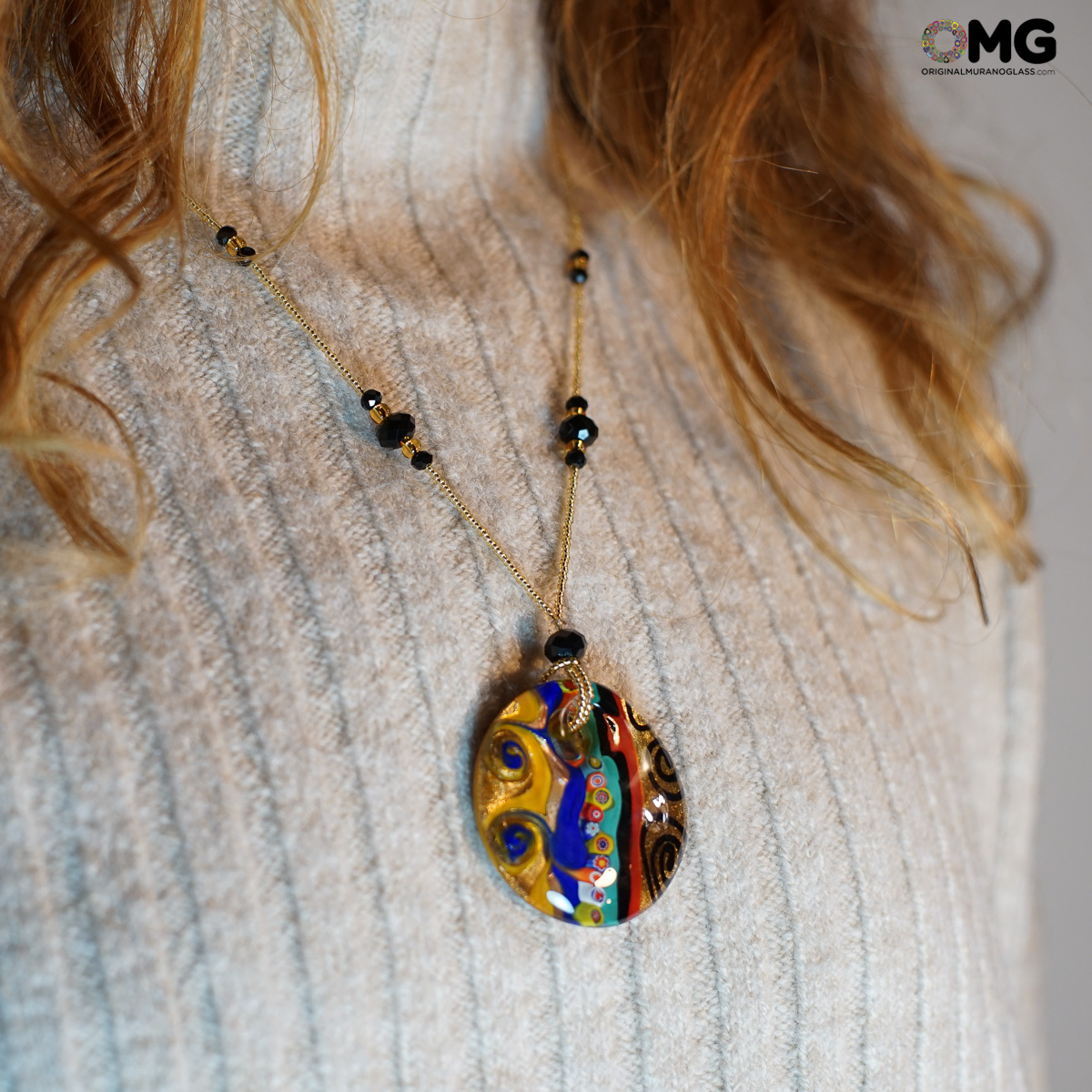 Handgefertigte Halskette aus Muranoglas, hergestellt im Fusionsglasverfahren und mit 24-karätigem Blattgold veredelt. Dieser Anhänger ist schlicht und vielseitig kombinierbar, dabei jedoch einzigartig im Stil.