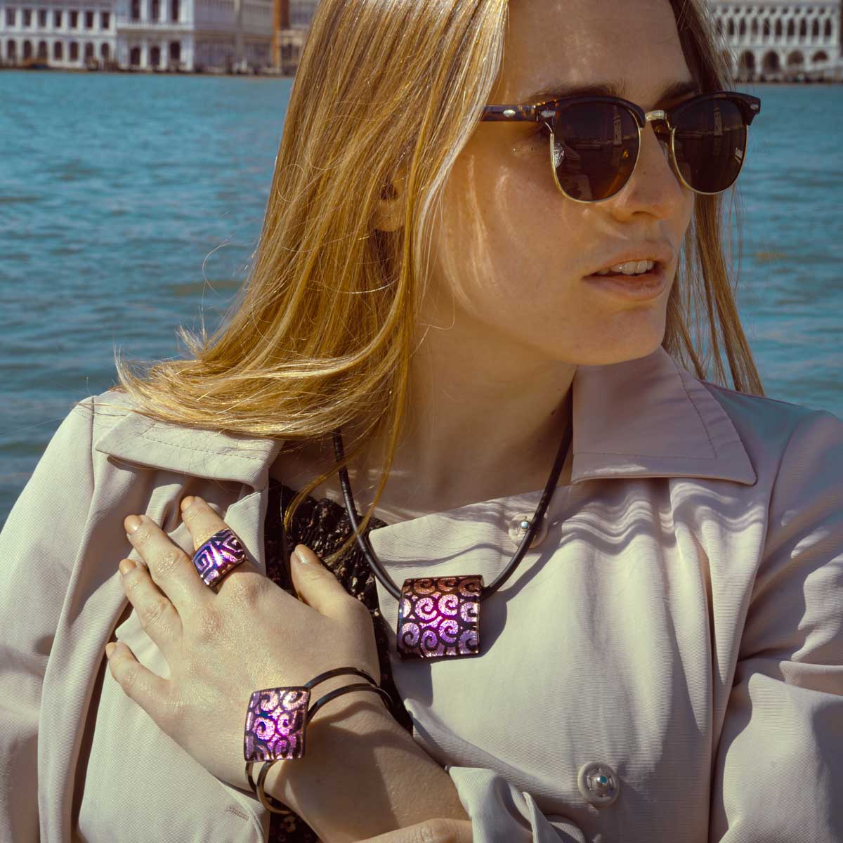 Square Pendant - Purple - Orignal Murano Glass OMG
