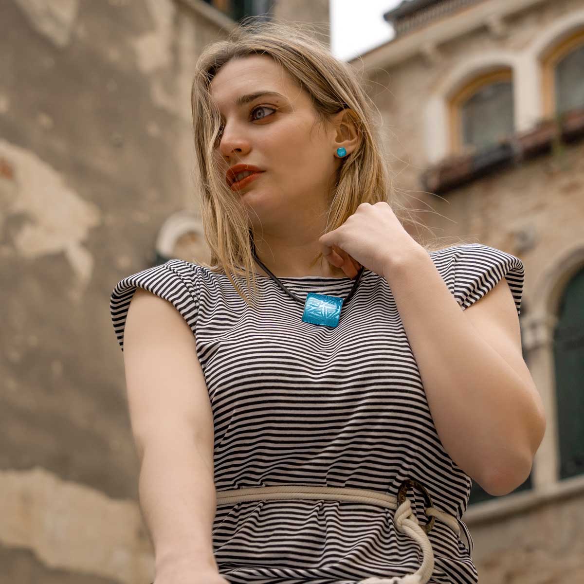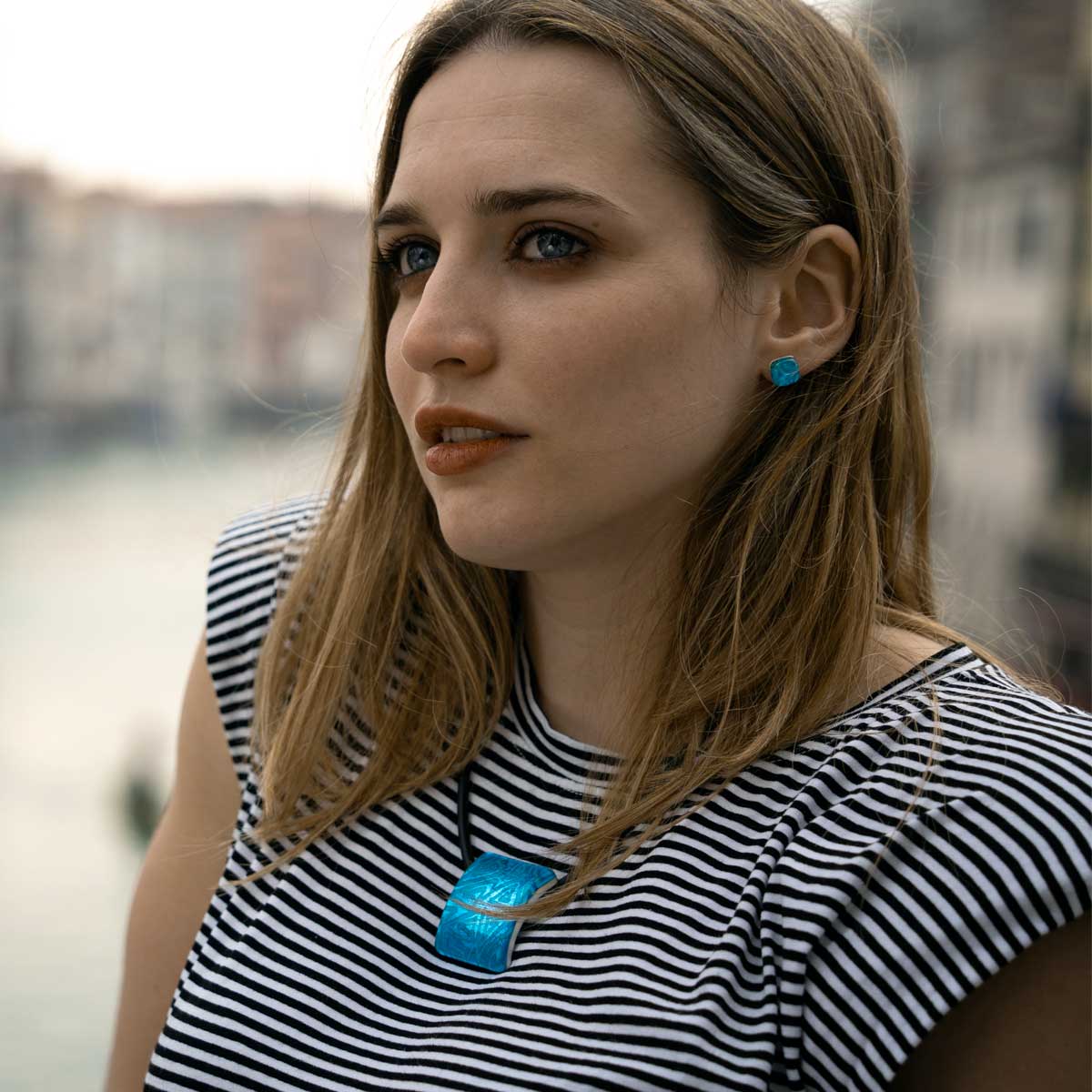 Square Pendant - Light Blue - Orignal Murano Glass OMG