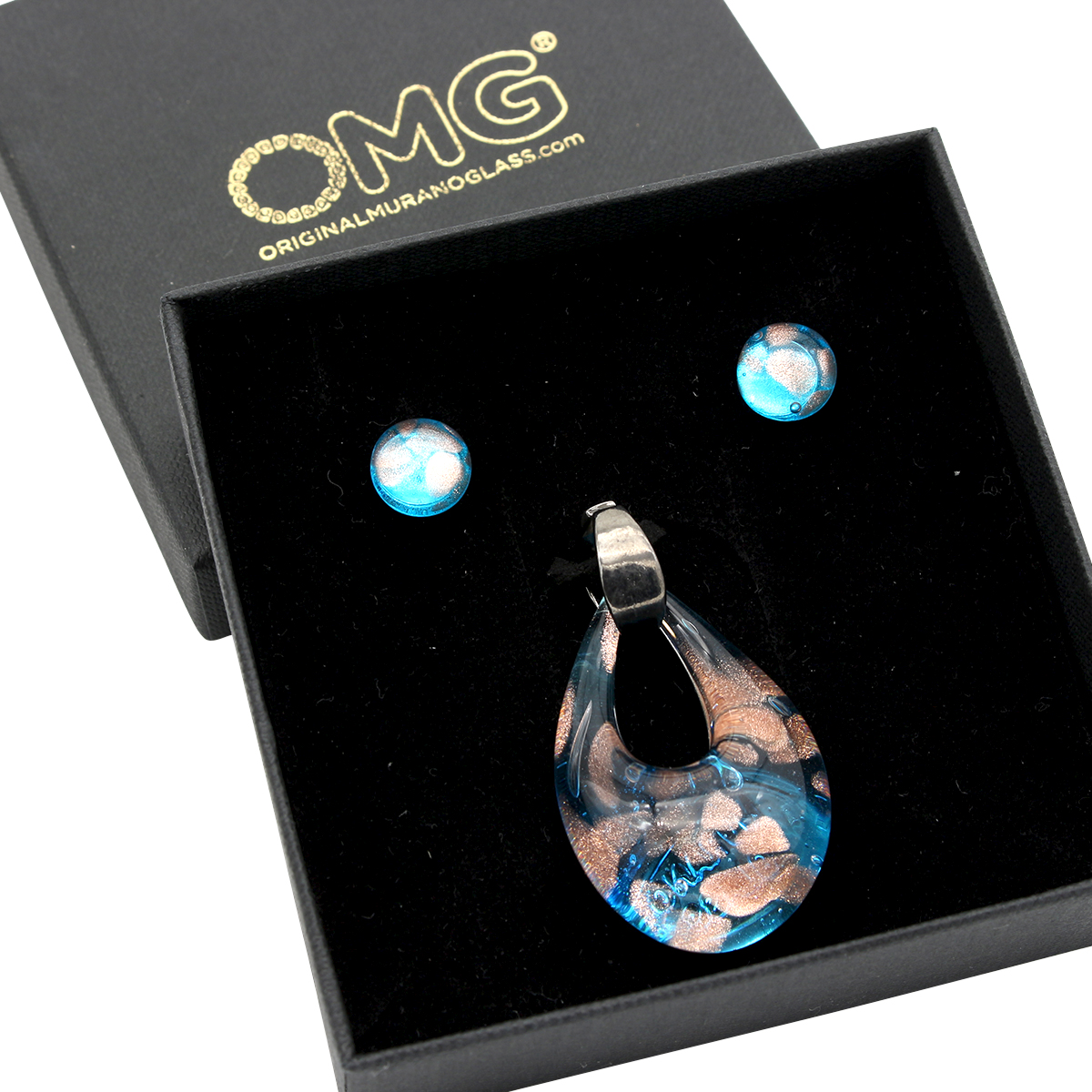 Parure Drop pendant necklace and earrings - Light Blue - Original Murano Glass