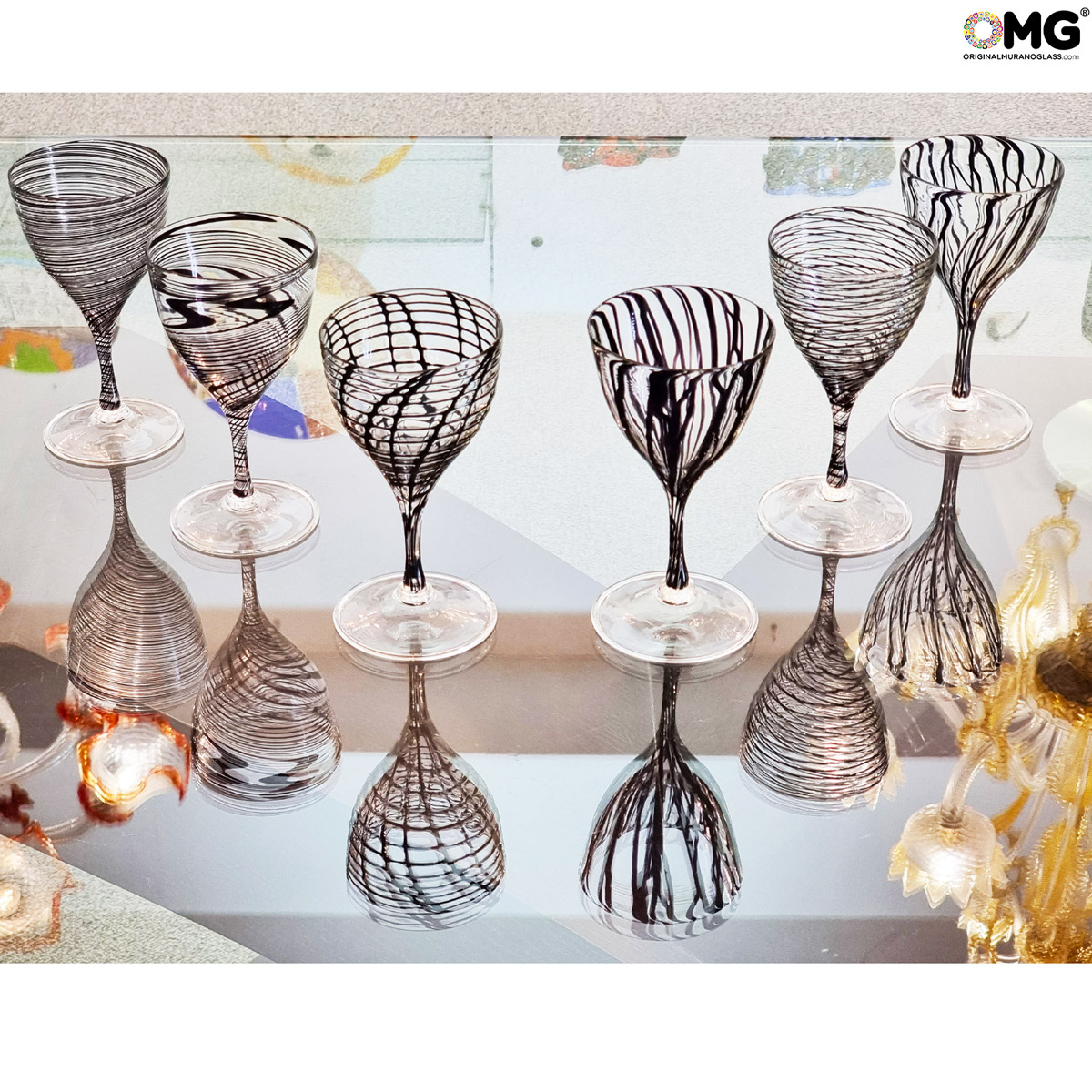 Drinking Glass - black lines Chalices Set of 6 pieces - original murano glass omg