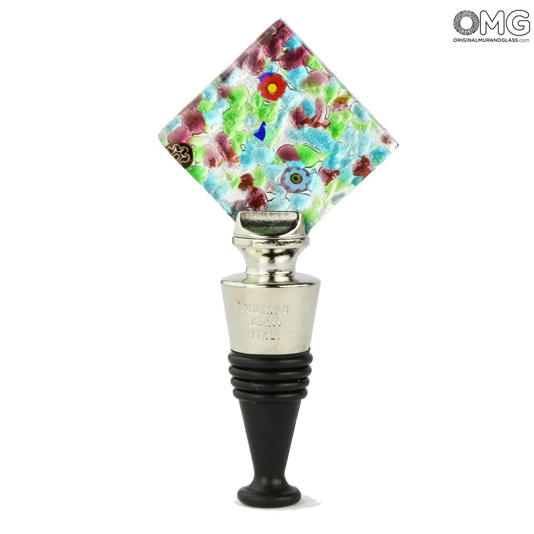 Bottle stopper handmade with the technique of fusing glass in Original Murano Glass, with addition of small glass pieces and millefiori.