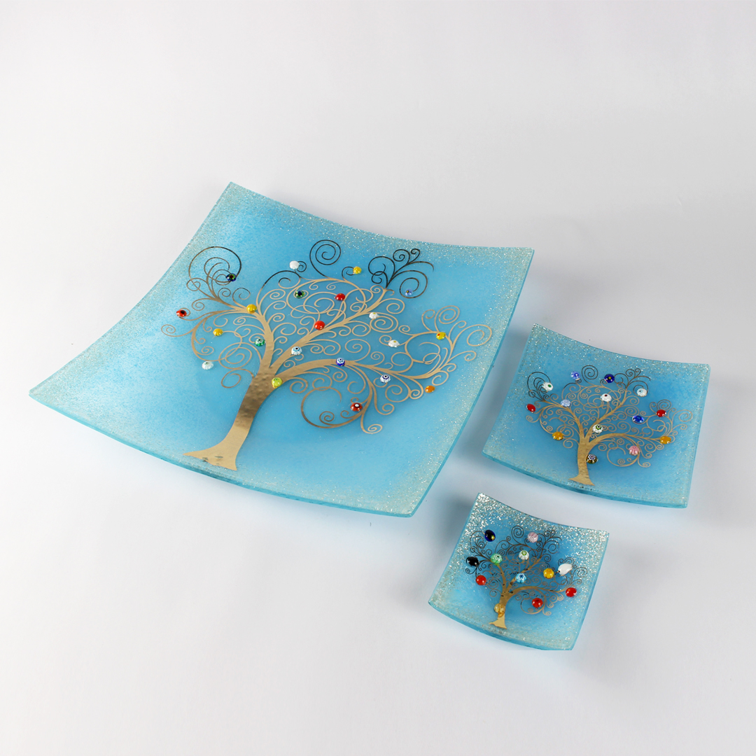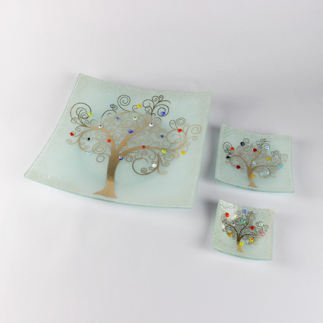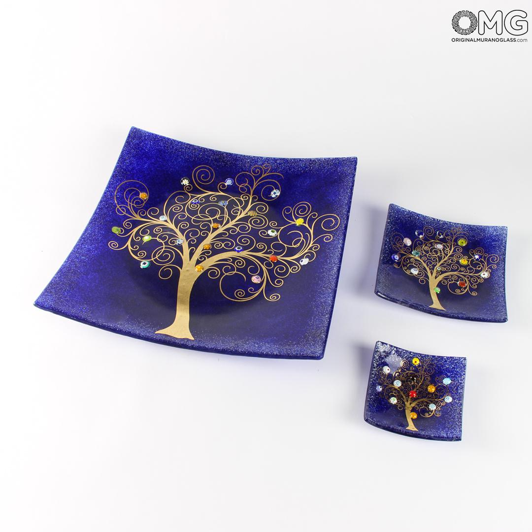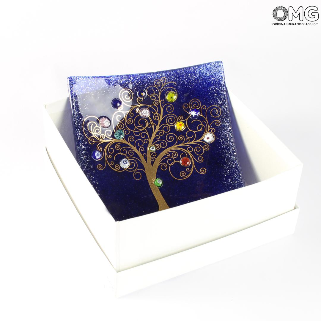 Il famoso svuotatasche con l'Albero della Vita, un tributo all'artista Gustav Klimt, realizzato con la tecnica della vetrofusione e con l'ausilio di decori in murrine di Murano. Un'idea regalo semplice ma allo stesso tempo autentica e ricca di significato: l'albero della vita indica infatti la connessione tra cielo e terra e il mondo sotterraneo.
