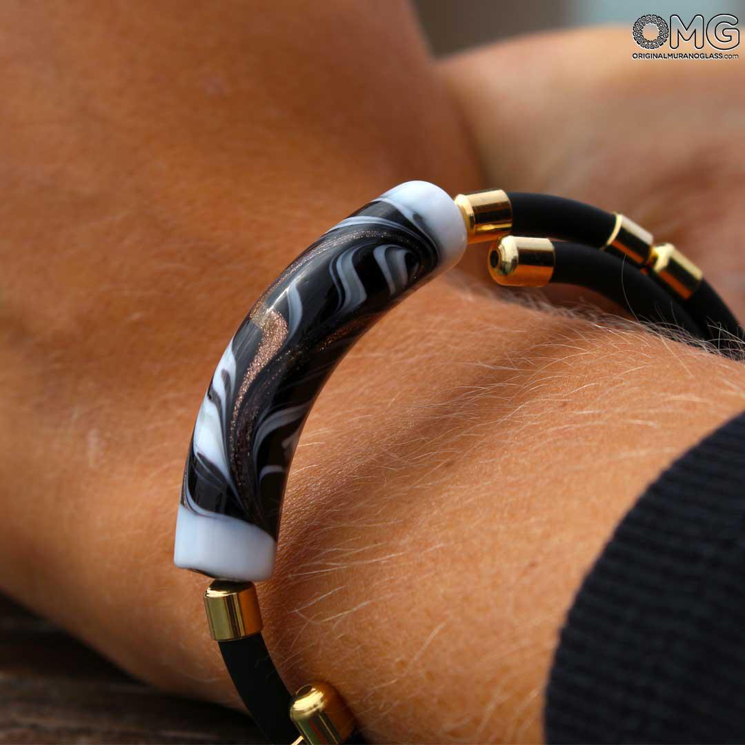 Bracelet Fiammingo - Perla lunga Nero con Avventurina - Vetro di Murano Originale OMG