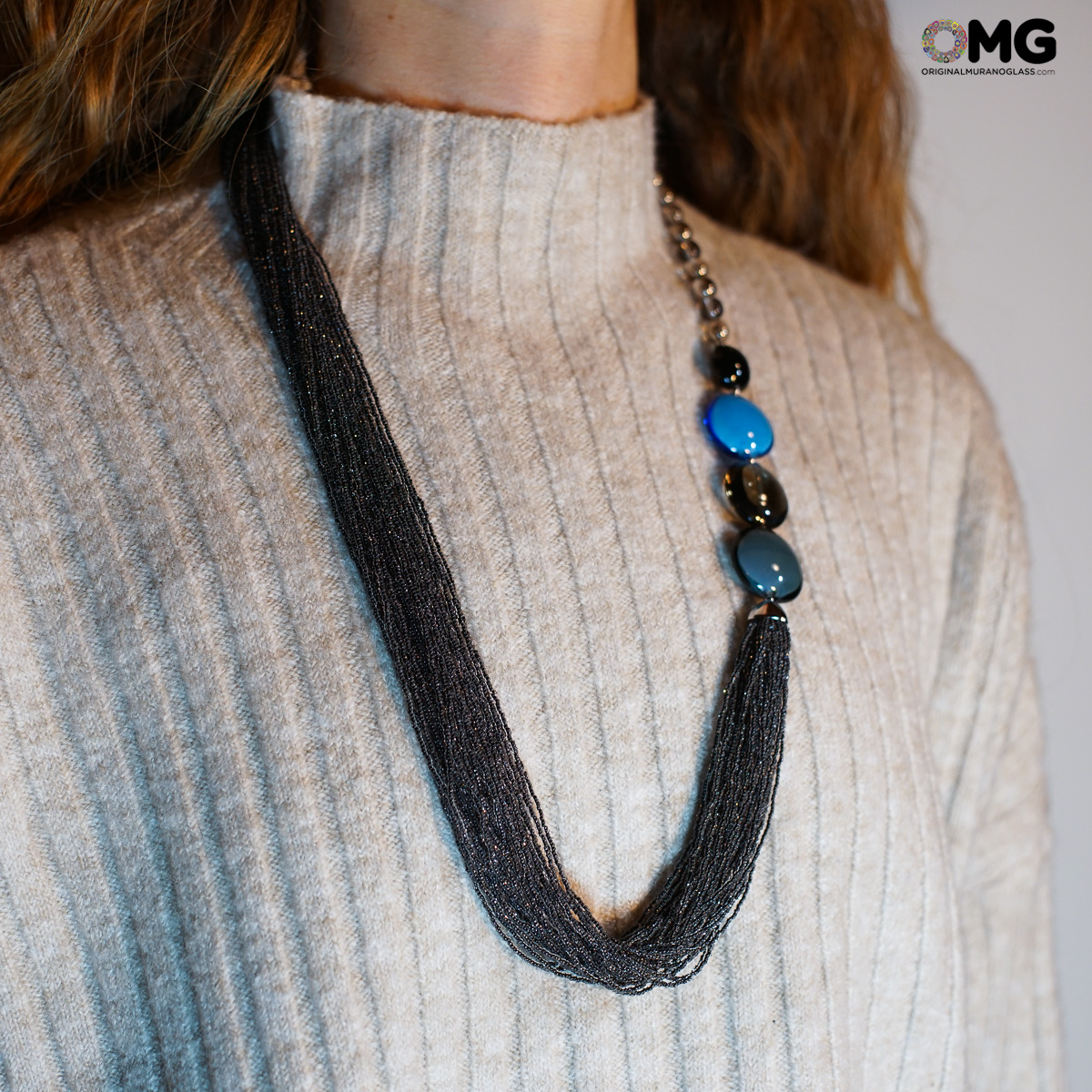 Collana in perle fatta a mano in vetro di Murano con la tecnica della lavorazione a lume.