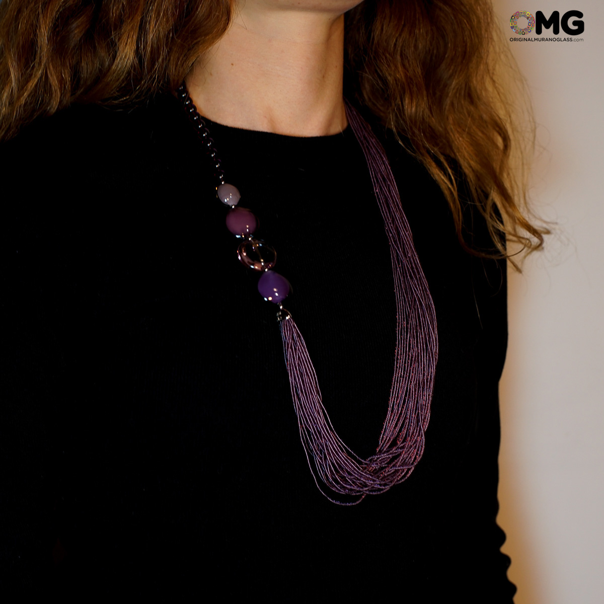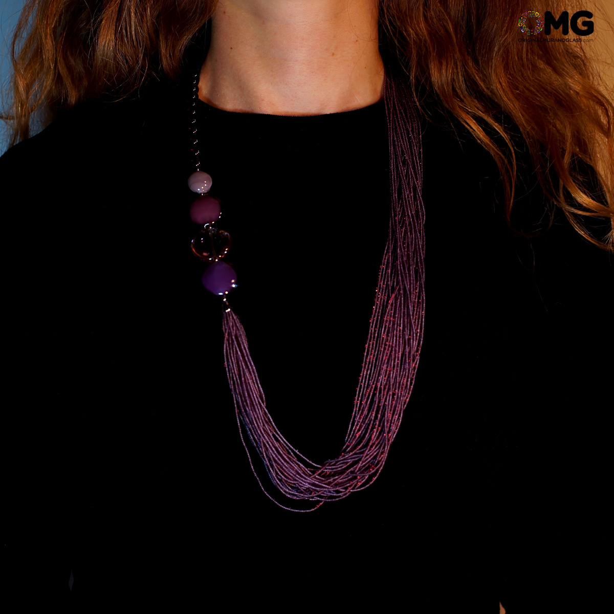 Collana in perle fatta a mano in vetro di Murano con la tecnica della lavorazione a lume.