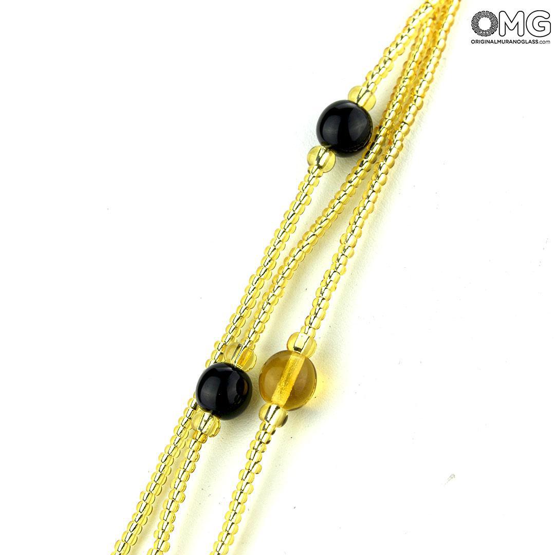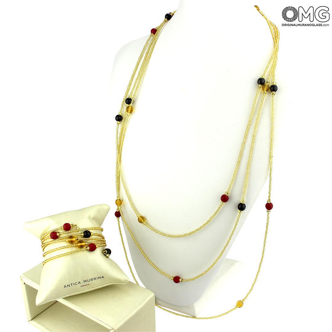 Collana di perle veneziane fatta a mano in vetro di Murano originale. Le perle sono realizzate una a una mediante lavorazione al lume dai nostri maestri vetrai. Esclusiva ed originale idea regalo per donna. Gioiello ideale per essere indossato durante eventi di gala o feste serali.