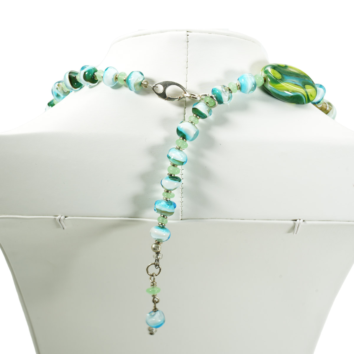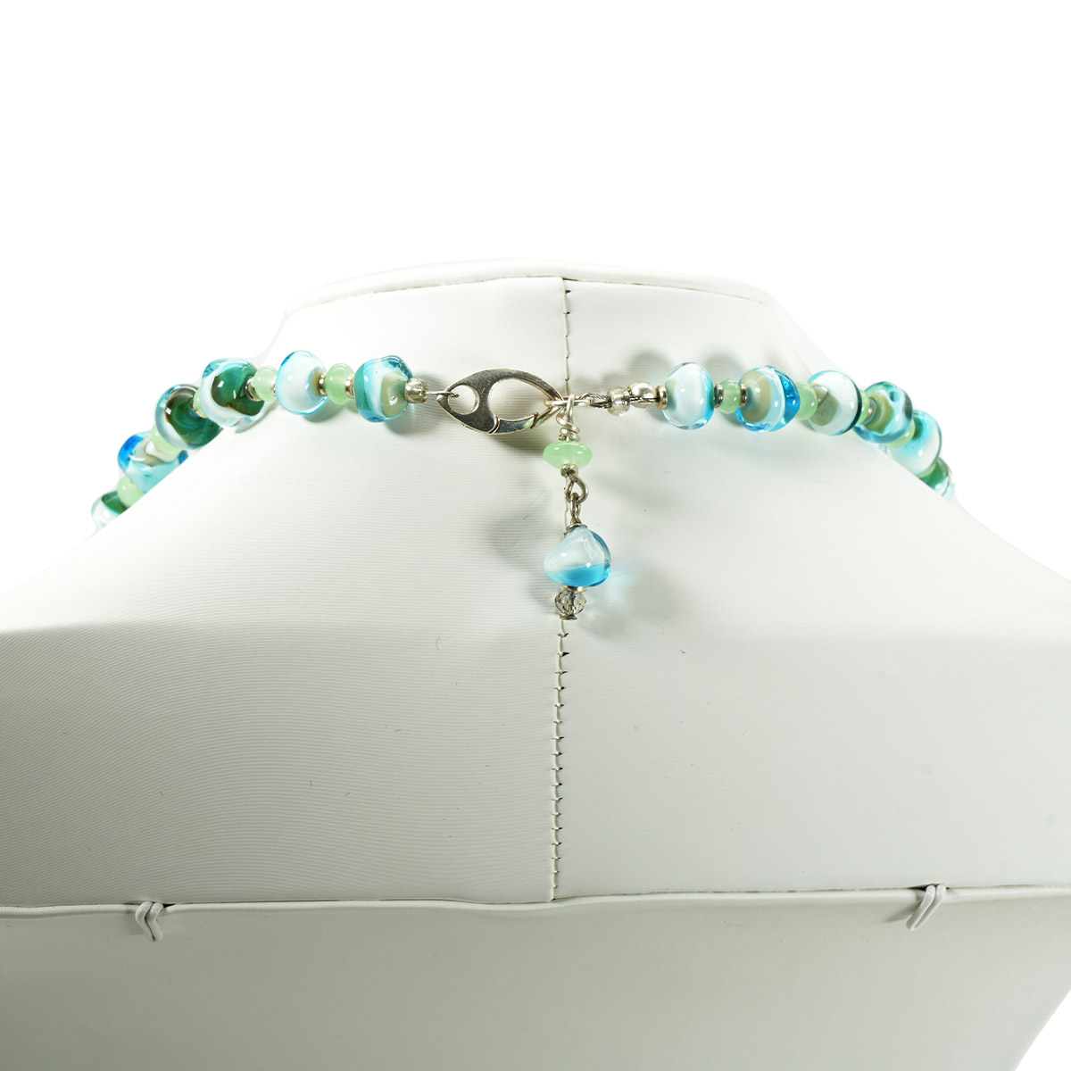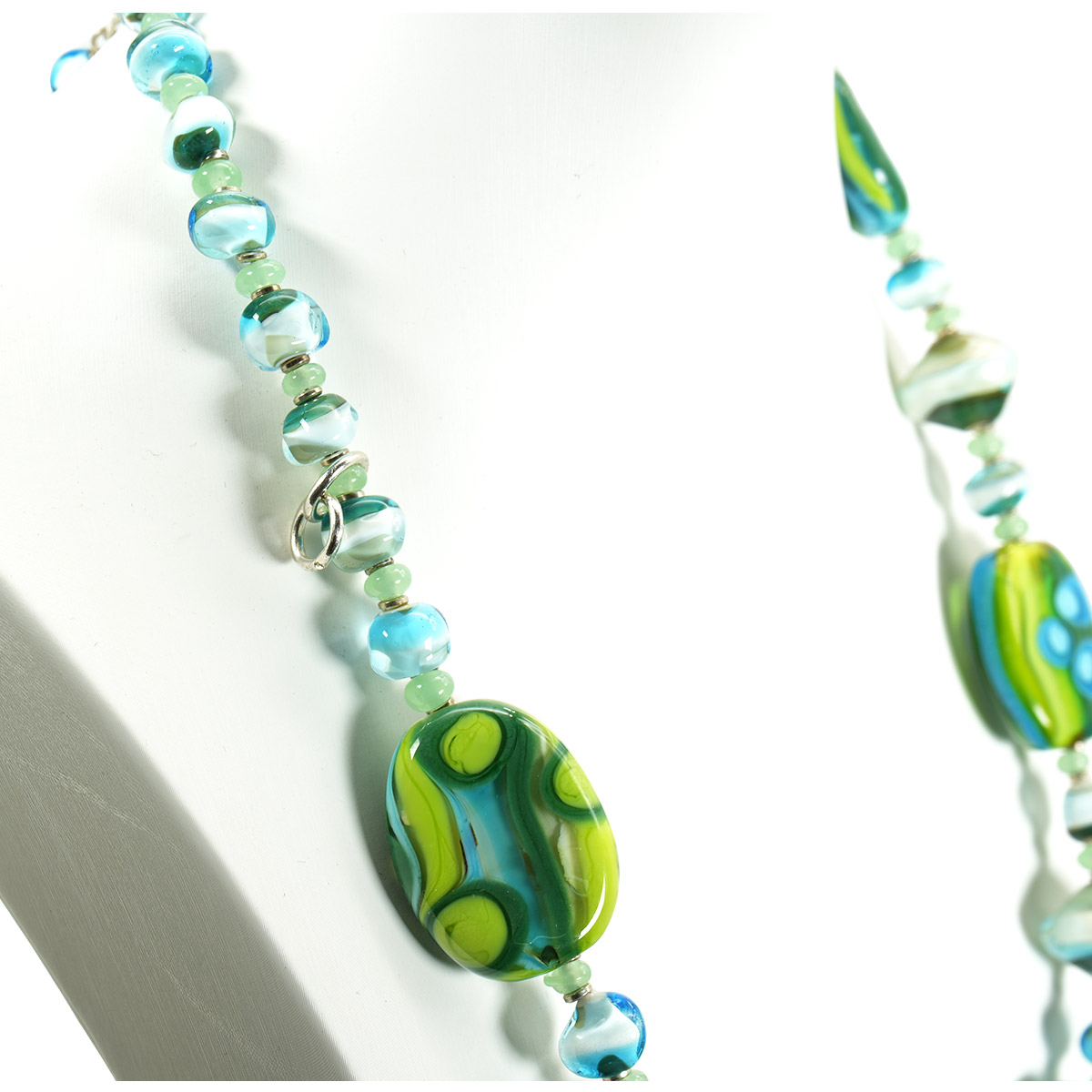 Collana di perle veneziane fatta a mano in vetro di Murano originale. Le perle sono realizzate una a una con lavorazione al lume dai nostri maestri vetrai. Indossabile in due misure Esclusiva ed originale idea regalo per donna.