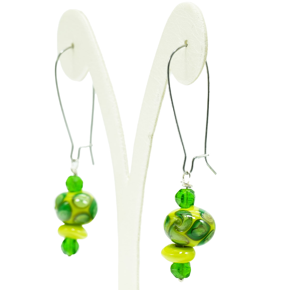 Orecchini in vetro di murano realizzati con la tecnica della lavorazione a lume.