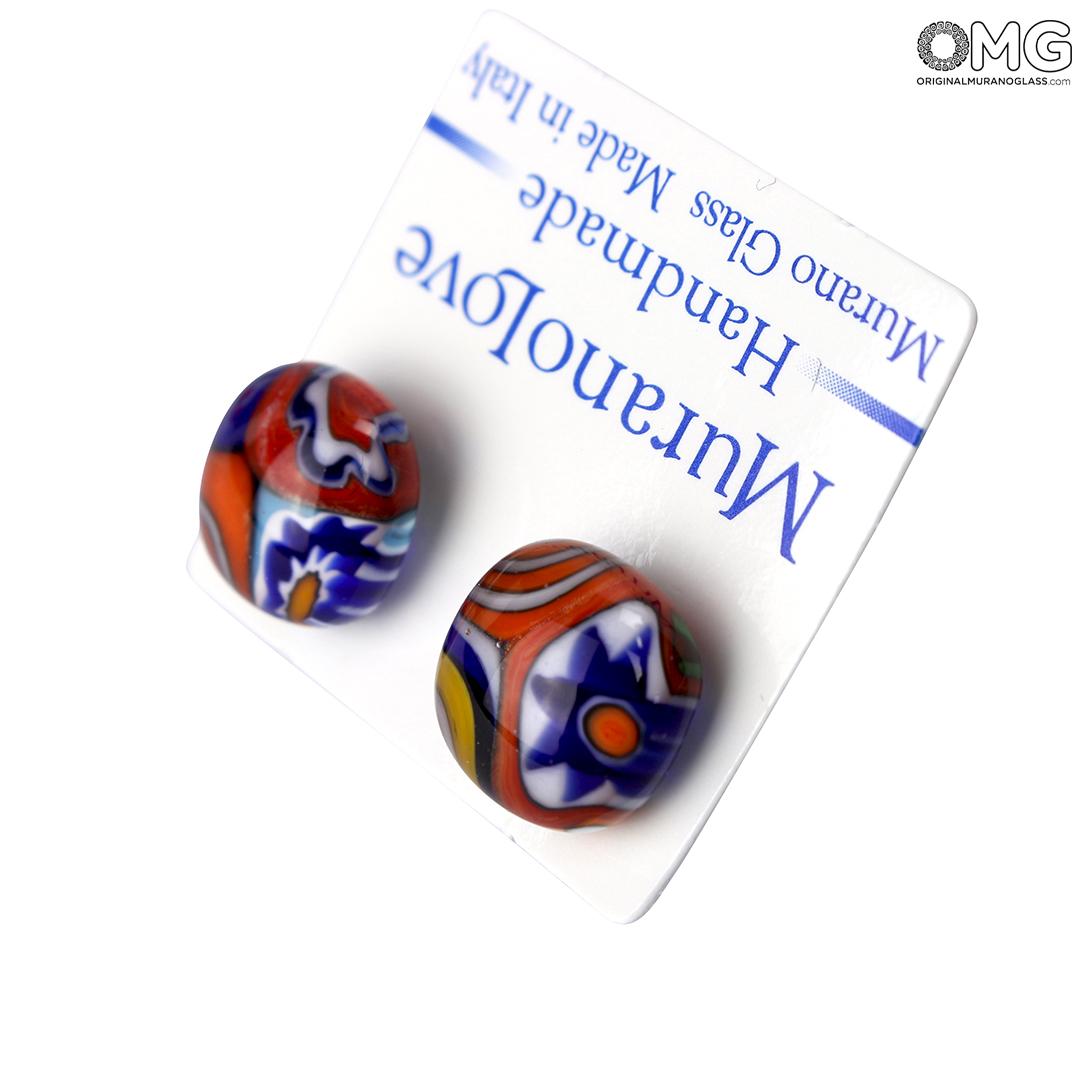 Orecchini Bottoni - Millefiori - Vetro di Murano Originale