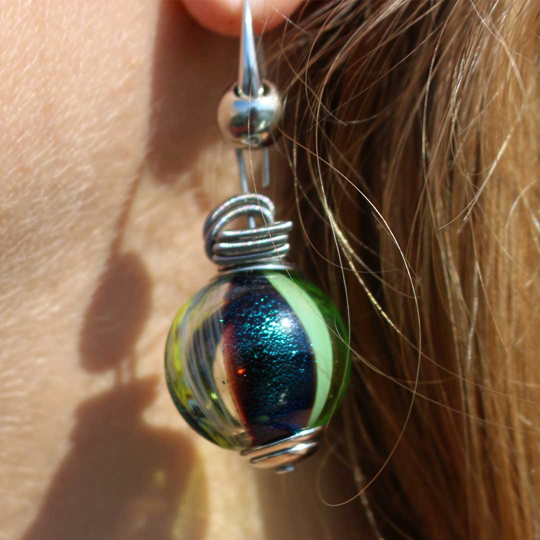 Orecchini in vetro di murano realizzati con la tecnica della lavorazione a lume.