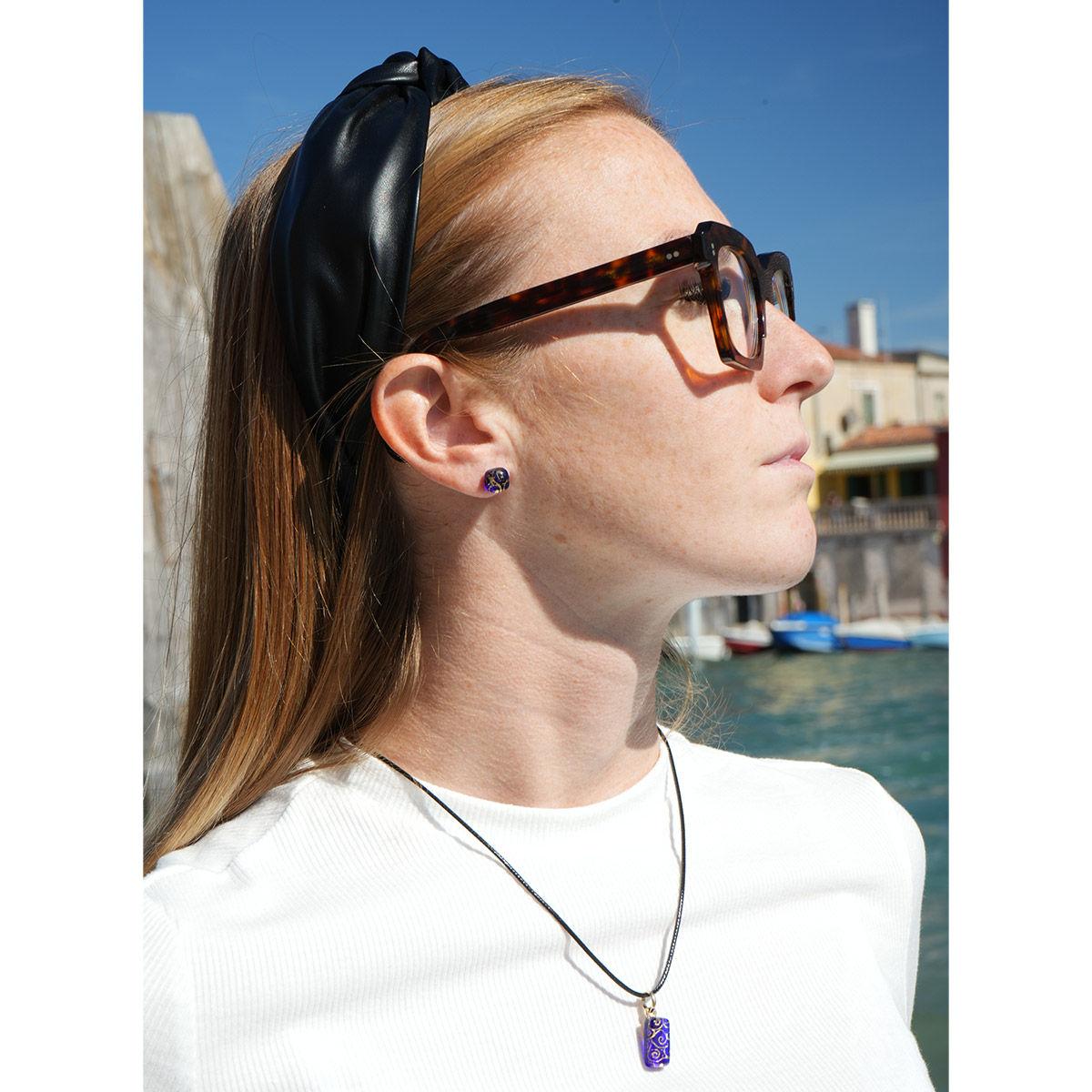 Parure Genova - blu e foglia oro - vetro di Murano