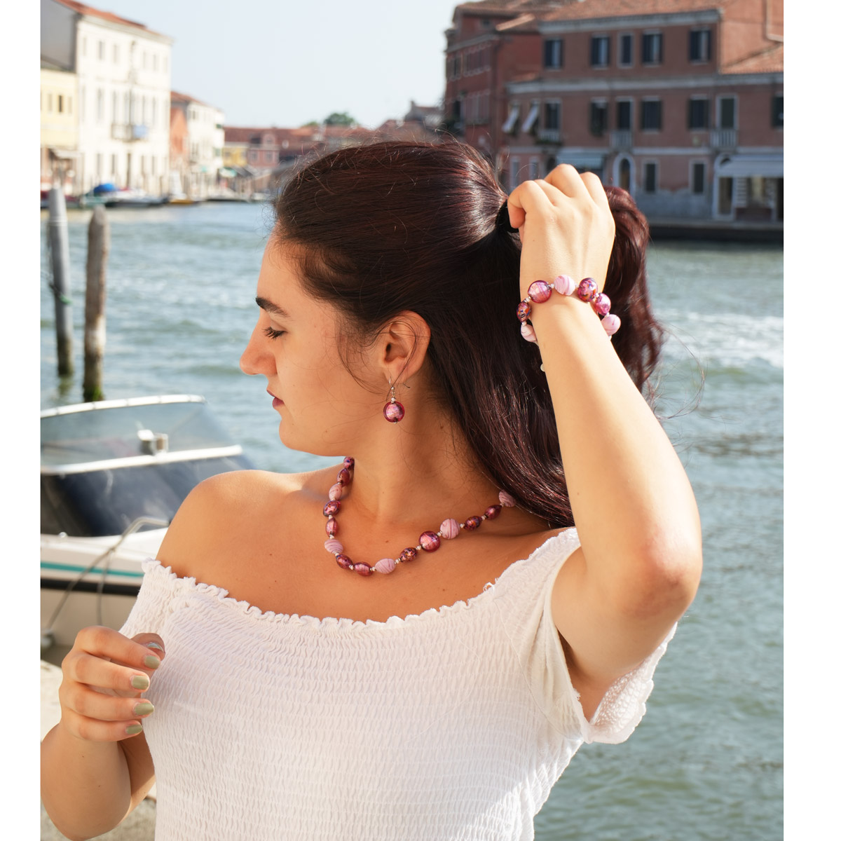 La Parure è realizzata a mano con la tradizionale tecnica a lume, e ogni singola perla è lavorata individualmente da abili artigiani.